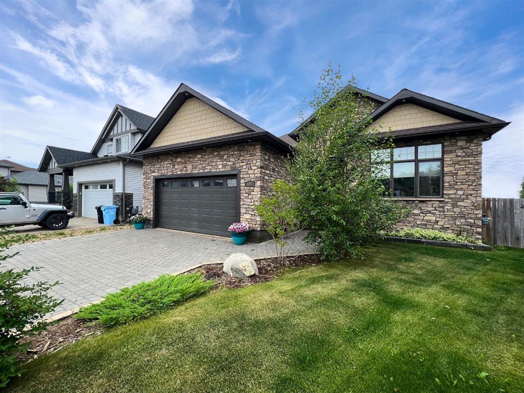 Welcome to your dream home! This EXECUTIVE STYLE BUNGALOW is the perfect blend of luxury and comfort, situated on a quiet cul-de-sac right next to the breathtaking Birchwood Trails. With over 3700 sqft of living space, this home is the ultimate family retreat. As you step inside, be prepared to be wowed by the unique floor plan that exudes grandeur, with soaring 12 foot ceilings and a stunning 2-way fireplace featuring a floor-to-ceiling rock wall. The main floor is designed to impress with a flex room that doubles as a home office, a 3rd bedroom or a space for your family\'s imagination to run wild, a formal dining room, a cozy living room, and a spacious eat-in kitchen. The kitchen is a chef\'s delight, boasting 2-tone cabinetry, quartz countertops, a sil-granite sink, spice drawers, stainless steel appliances, and an eat-up bar. The main floor also features 2 generously sized bedrooms, including a primary suite with a gorgeous ensuite that offers dual sinks, an air jet tub, a tiled shower, and a walk-in closet. The quality craftsmanship is evident throughout the home, with hardi-plank siding, supersized windows, crown mouldings, top-down bottom-up blinds, and classic archways that add a timeless, elegant touch. The basement is an entertainer\'s paradise, featuring a family games room with a cozy fireplace, large above-ground windows, a wet bar, and a pool table. The basement also offers 3 spacious bedrooms, a full bathroom, a gym room, and plenty of closet space for storage. The backyard is perfect for hosting summer barbecues or just lounging with a raised deck with low maintenance composite decking and a large ground-level stone patio. The pie-shaped lot offers privacy with tall columnar aspens and a stone fire pit patio in the large side yard. Living next to the Birchwood Trails means you can enjoy year-round outdoor activities like cross country skiing, biking, and hiking. The 21\' x 27\' attached heated garage features built-in loft storage and direct access to the home through the mudroom. This home is perfect for families, located in a cul-de-sac away from the hustle and bustle of the city, with approximately 40 young kids living within 1 block of the home and less than 1 km walking distance from St. Kateri and Walter Gladys elementary schools. Don\'t miss your chance to make this executive bungalow your forever home!