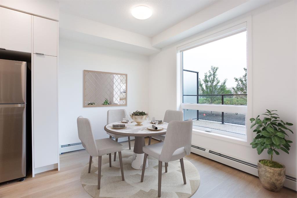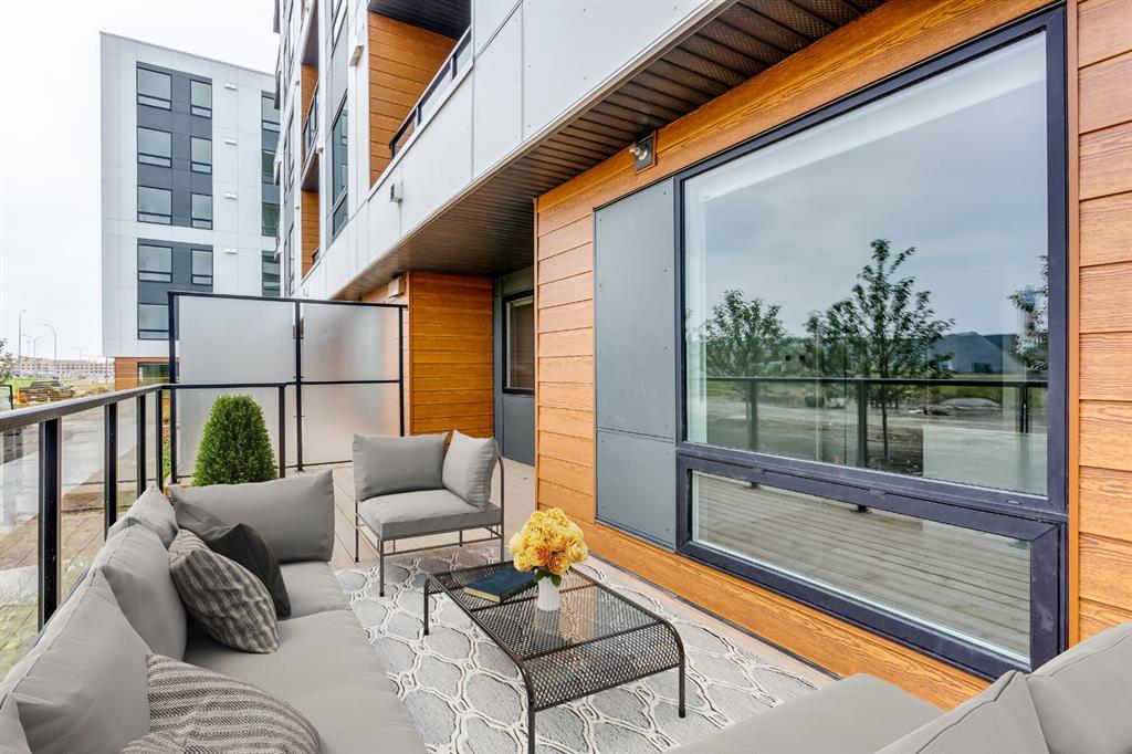 Ground level access with deck. Experience modern living with this stylish ground-floor 1 bedroom plus den and 2-bathroom condo in East Hills Crossing, located directly across from East Hills Shopping Centre. With Costco, Walmart, Cineplex, and a variety of dining options just steps away, plus quick access to Stoney Trail and nearby transit, convenience is at your doorstep.