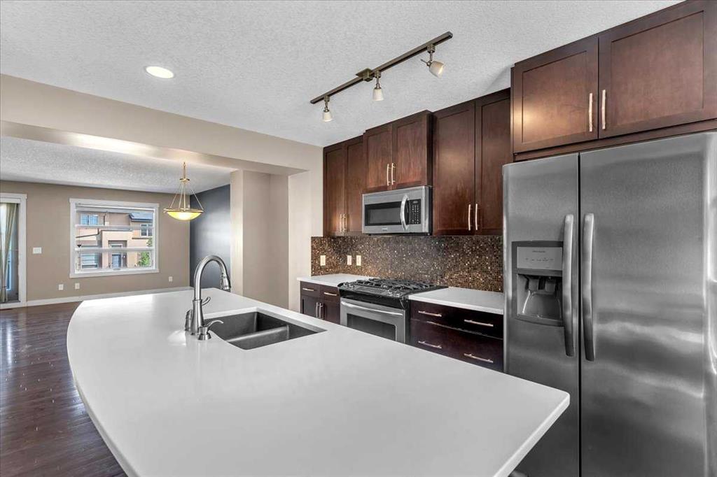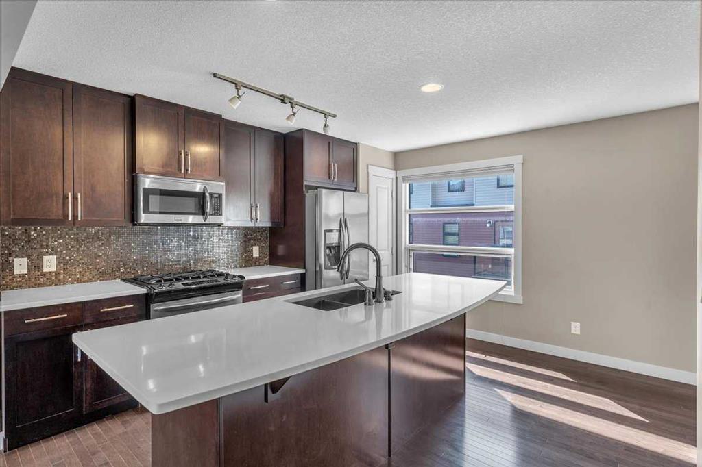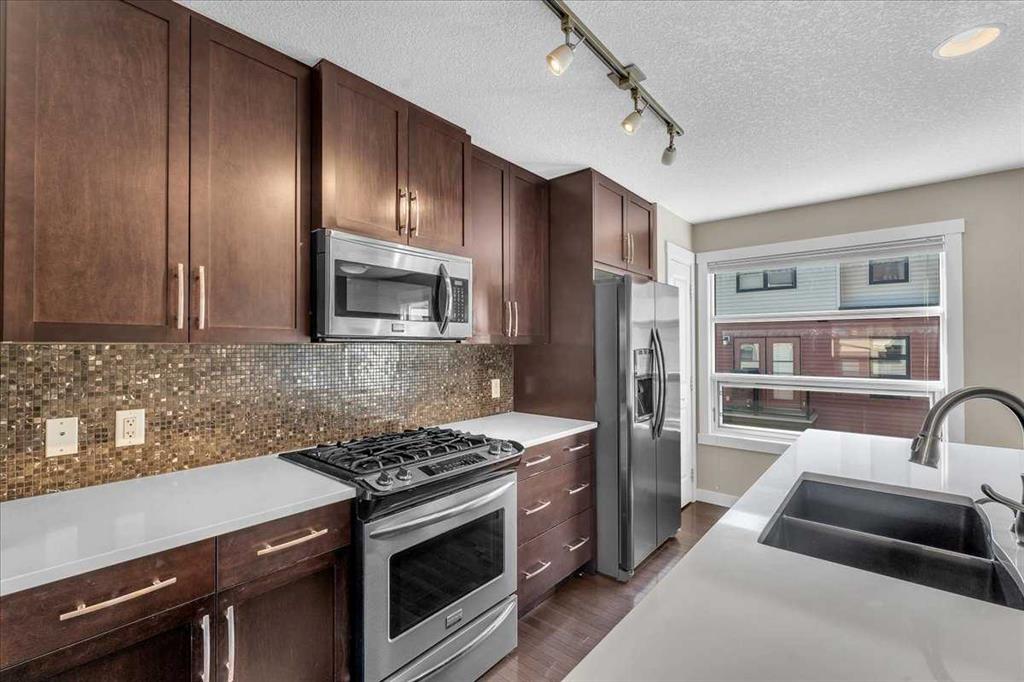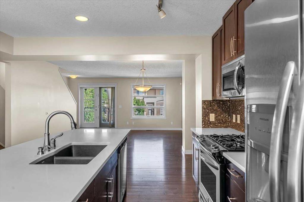 This gorgeous townhome is the one you\'ve been waiting for! Spacious, bright and sophisticated with beautiful finishings and THREE levels of living space! It is situated on a quiet tree lined street in the prestigious community of Aspen Woods. This rare layout is the largest in the complex with 1485 SF of developed space! When you step inside you\'ll be welcomed into a versatile flex room you can tailor to your needs: home office; den; playroom for kids; reading nook, or a mudroom leading to your DOUBLE attached garage! Upstairs is your main living space - open, airy, contemporary and bright. You\'ll love the beautiful kitchen with quartz countertops, stainless steel appliances, pantry and gas range. There is plenty of room for island seating or a full sized dining table, if you love hosting dinner parties. The living room is also a great size, and will easily accommodate large, cozy furniture or a sectional to lounge in at the end of a long work day. You\'ll also love the front balcony with views of this gorgeous community. On the top level, you\'ll find 2 Primary bedroom retreats, both with walk-in closets and large private ensuites. This wonderful, established complex is well-run and the location is everything! Enjoy quiet evening walks along Aspen Woods Lake or Aspen Landing Pond. You\'ll also love the amenities nearby - restaurants, coffeeshops, groceries just steps away! Don’t miss your chance to call this exceptional property your new home—schedule your private viewing today and experience all that Aspen Woods has to offer!