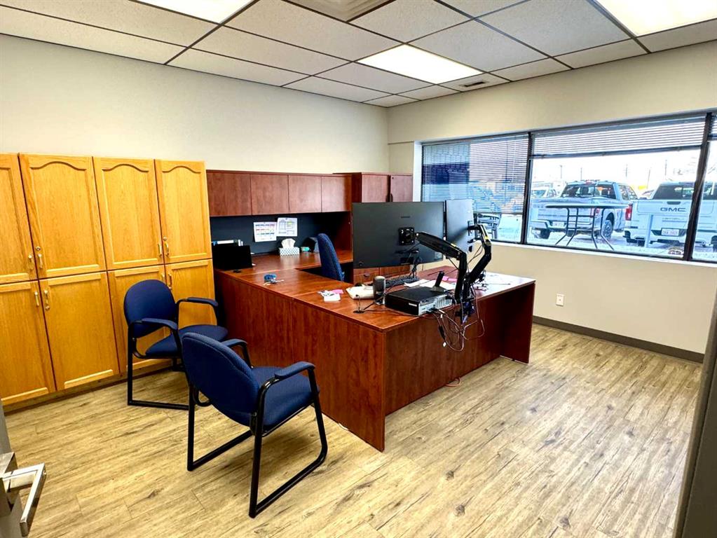 TURN-KEY SUB-LEASE AVAILABLE!. SUBSTANTIALLY RENOVATED INDUSTRIAL BAY, Located in Northlands Industrial Park, this fully developed, HIGH-END 4,517 SQ FT Light-Industrial bay featuring a total of 6 offices (3-up), 3 baths (1-up), and an executive-finished boardroom (1,265 SQ FT developed mezzanine space). At the back there\'s 1900 SQ FT+/- of shop/storage space at the back. (70\'x28\'W) with a total main-floor footprint of 3,252 SQ FT (28\'x120\'). A large 12x14\' Overhead Door w/ automatic opener, ceiling height of 18\', services the back. Partially paved back-alley access for easy loading/ unloading and a generous helping of parking at the front & rear. A tremendous opportunity to sub-lease this nicely built-out industrial condo! . All Office spaces are air conditioned. Operational Expenses of $4.45/PSF or $1,675.05/month (2025) which includes, Taxes, insurance, condo fees, water & sewer. With a base rent of $3,387.75/month, puts this bay at an asking price of $5,062.80/month or $13.45/PSF total rent on an introductory price! Easy to show during business hours. Possession can be immediate.