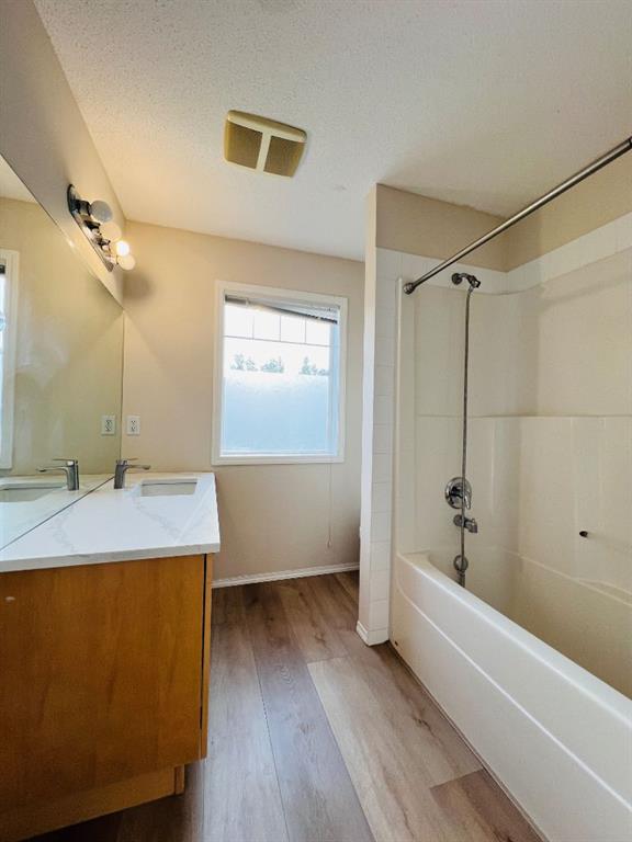 Welcome to 110 Panamount Drive NW! This bright and inviting 3-bedroom, 1.5-bath home has been tastefully updated (2024) with new vinyl plank flooring, kitchen quartz countertops, dishwasher, and a fresh coat of paint throughout. The main level features a functional layout with a spacious living area and a large front window overlooking the beautiful park across the street, which offers plenty of parking. Upstairs offers three comfortable bedrooms, including a generous primary with a cheater ensuite. Enjoy the convenience of a single rear attached insulated garage and. Plenty of parking. Ideally situated in walking distance from shopping centres with Superstores, Homedepot, Canadian Tire, T&T supermarket, banks, schools, VIVO, and a major transit hub, this home offers the perfect blend of comfort and convenience.
