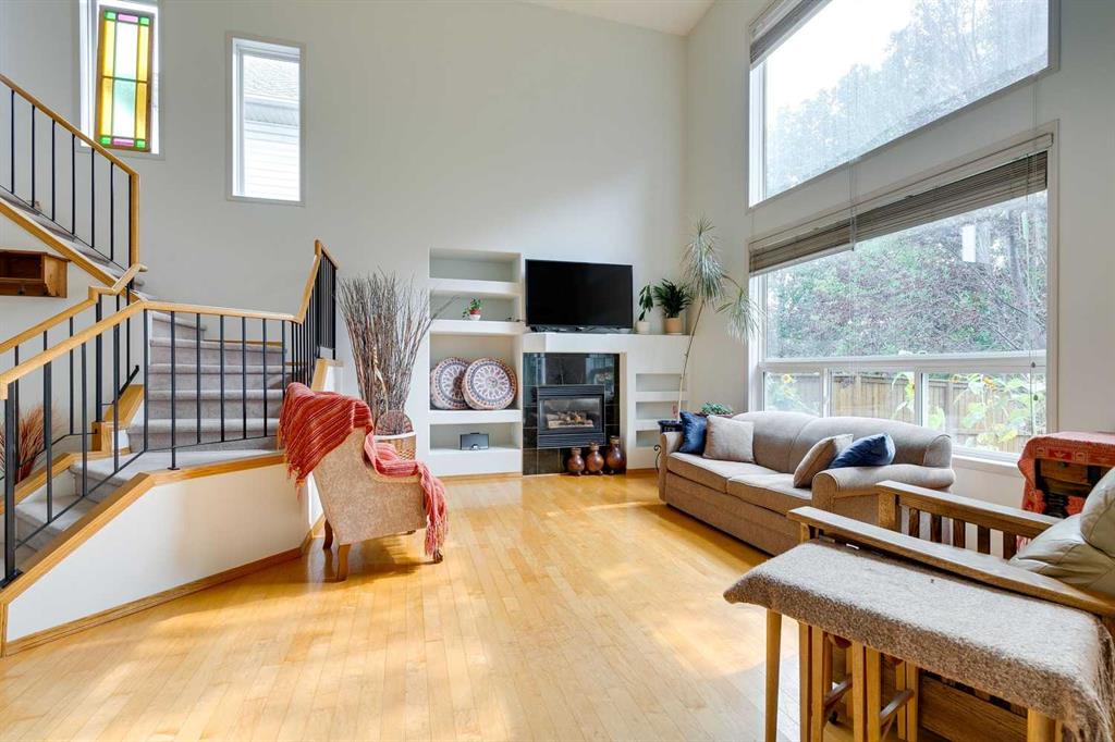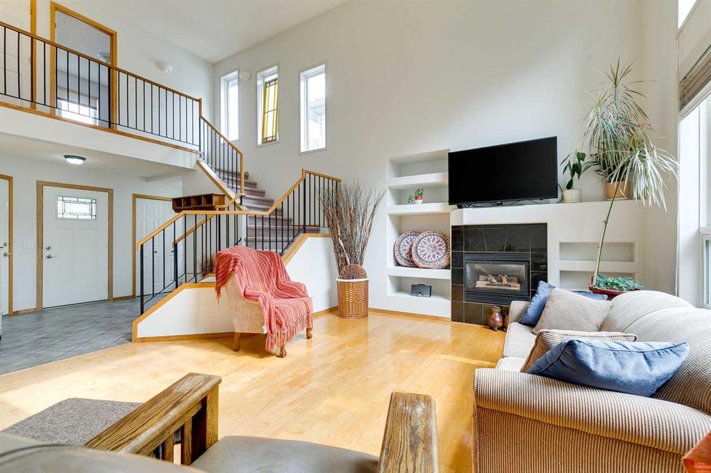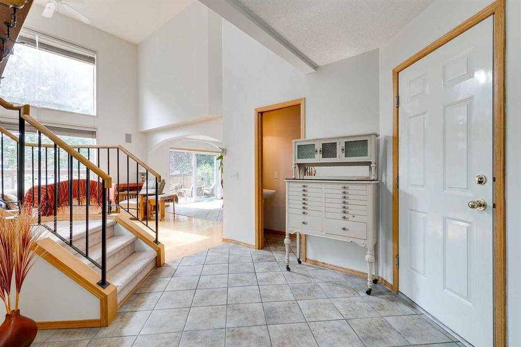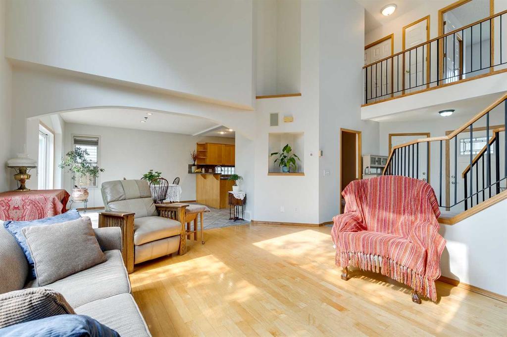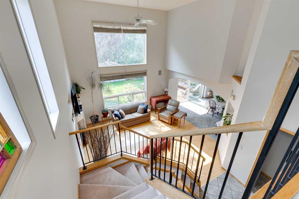 Welcome to the heart of Valley Ridge, a family-friendly community where nature, convenience, and a welcoming atmosphere come together. This sought-after neighbourhood offers direct access to the Valley Ridge Golf Course, Bow River pathways, and over 50% preserved green space—ideal for hiking, biking, and exploring the outdoors. Families will value the proximity to reputable schools, while the active community association fosters connection through events and programs. With quick access to Highway 1 and Stoney Trail, commuting downtown or across the city is effortless. This beautifully maintained home blends classic charm with modern comfort. The main level features a spacious foyer leading into a sun-filled living room with soaring 20-foot ceilings. An open floor plan flows into the dining area and generous kitchen, all overlooking the backyard. Upstairs, the primary suite includes a walk-in closet and 4-piece ensuite. Two additional bedrooms share a Jack & Jill bathroom, and laundry is conveniently located on the upper level. The finished basement offers a large family room, fourth bedroom, full bathroom, and ample storage. Outside, mature trees, a wood deck, and a garden shed create a private backyard retreat—perfect for relaxing or entertaining.