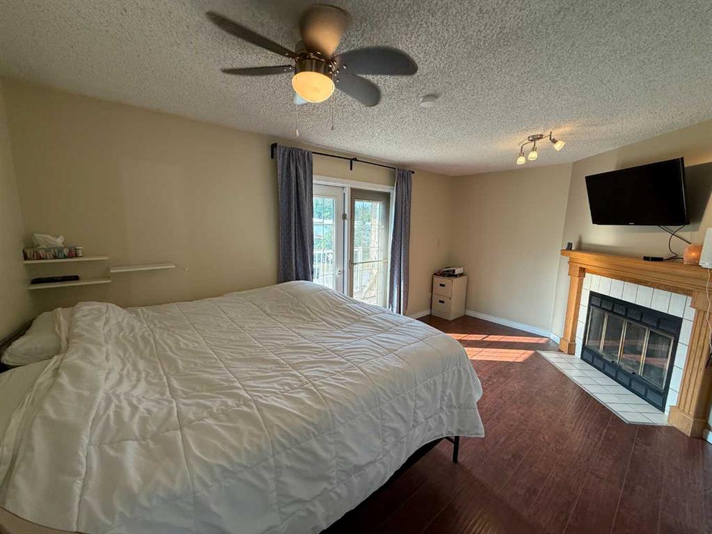 All 3 upstairs bedrooms are located on one side of the home, including the primary suite with fireplace, 3-pc ensuite, walk-in closet, and private south-facing balcony. The other two bedrooms also feature walk-in closets and share a full 4-pc bath.