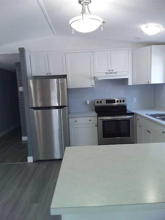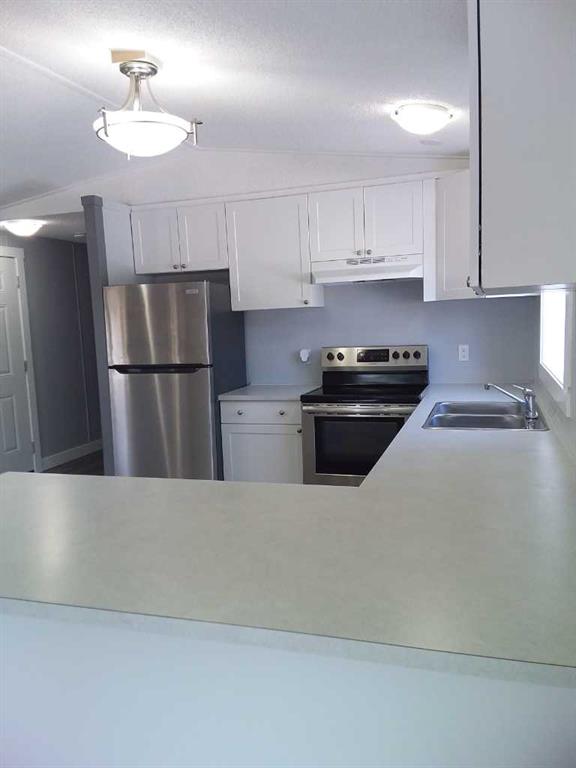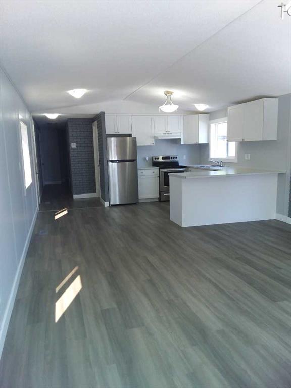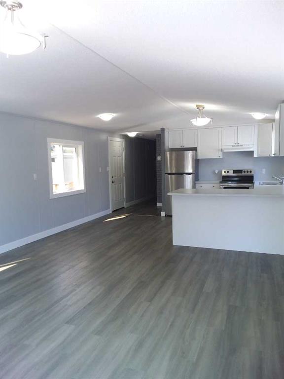 Affordable living at its best! Available immediately! This is a large (16x67 ft.) 3 bedroom, 2 bath beauty including double vanity sinks in the primary ensuite. It has been refurbished with stylish vinyl plank flooring throughout and completely repainted. The bright kitchen has luxurious white cabinets, a huge peninsula and stainless steel appliances - a double door fridge with freezer drawer, glass top stove and built-in dishwasher. A dryer is included. Every inch of this home is clean and fresh! The exterior has been reclad in maintenance free vinyl siding plus a steel roof on 2 x 6 walls for extra energy savings. New, double paned vinyl windows add to the comfort. This unit is located a short distance to the clubhouse which features a community gathering area with kitchen, a modern exercise room, an 8-ball pool table and games room plus common area playground and bbq area. Calgary Village is a quiet, family friendly community. Financing available at great rates upon approval. Beyond the purchase price, all sites in the park rent for $1,299 per month which includes water, sewer, garbage removal and clubhouse amenities. The clubhouse offers a modern exercise room, a games room with pool table, common areas with large screen t.v., community kitchen, bbq\'s and children\'s playground. There are no additional costs for these amenities. Although this sounds high, it includes many amenities not available at other parks.