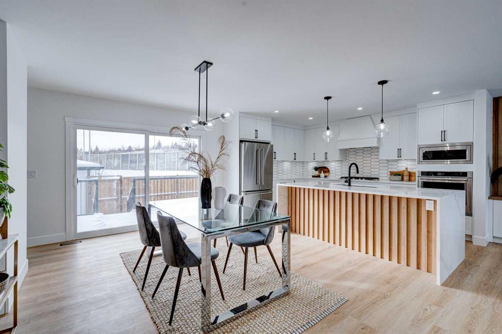 This fully REDESIGNED and RENOVATED FOUR-LEVEL SPLIT is a rare find, combining high-end finishes, modern functionality, and a fantastic location! Nestled on a spacious CORNER LOT in the heart of WESTGATE, this home is an ideal choice for families, professionals, or anyone looking for a move-in-ready home w/ style and substance! From the moment you step inside, the warmth and character of this home shine through. The main level is bright and welcoming, w/ an open-concept living area and large windows for lots of natural light, w/ a stunning floor-to-ceiling tiled fireplace as the focal point, w/ built-in shelving and a beautiful wood slat feature wall. The kitchen features stunning, designer touches, including high-end appliances that sit alongside a sleek waterfall island w/ wood slat accents, and custom cabinetry make it a dream for both everyday cooking and hosting. The dining area seamlessly connects to the outdoors w/ double doors leading to a brand-new deck—perfect for summer BBQs or enjoying a quiet morning coffee. A good-size den/home office and a 4-pc bathroom round out the main level, before heading upstairs to the dedicated primary retreat. The primary suite offers a peaceful haven w/ its stylish feature wall, spacious walk-in closet w/ built-in organizers, and oversized windows. The clean, modern ensuite features a luxurious soaker tub, a double vanity w/ premium fixtures, and a walk-in shower w/ body jets, creating a space where you can truly unwind. On the WALKOUT level, a functional and stylish mudroom w/ custom cabinetry provides ample storage, keeping everything organized. This level also features a versatile space perfect for a home office/business (separate front entrance)gym, or bedroom, plus a convenient laundry room w/ cabinetry & a sink. The basement extends the living space even further, offering two generously sized bedrooms, a spacious rec room w/ built-in media centre, a wet bar w/ full-height tile backsplash and beverage fridge, and another full bathroom. Beyond its impressive interior, this home has been extensively updated w/ quality materials built to last. The exterior features durable Hardie board siding, brand-new windows, and a recently replaced roof. A massive detached double garage w/ its own sub-panel provides plenty of parking and storage, while the large driveway and ample street parking ensure convenience for guests. Living in Westgate means enjoying a quiet, well-established neighbourhood w/ incredible amenities. Just two blocks from Edworthy Park, outdoor recreation is right at your doorstep. Top-rated schools—including Westgate School, Vincent Massey, and Ernest Manning—are within minutes, making this an ideal location for families. Westbrook Mall, the Westbrook LRT station, and various shopping and dining options are just down the road, offering the perfect balance of suburban tranquility and urban convenience.