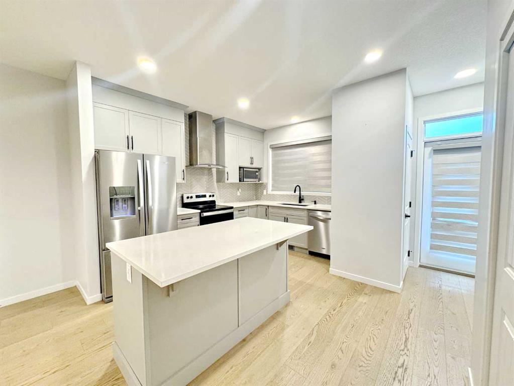 At the heart of the main floor is a gourmet kitchen featuring a center island, upgraded cabinetry, stainless steel appliances, and a walk-in pantry. The kitchen flows seamlessly into the dining and living area, while a finished deck and landscaped yard offer the perfect outdoor space for entertaining.