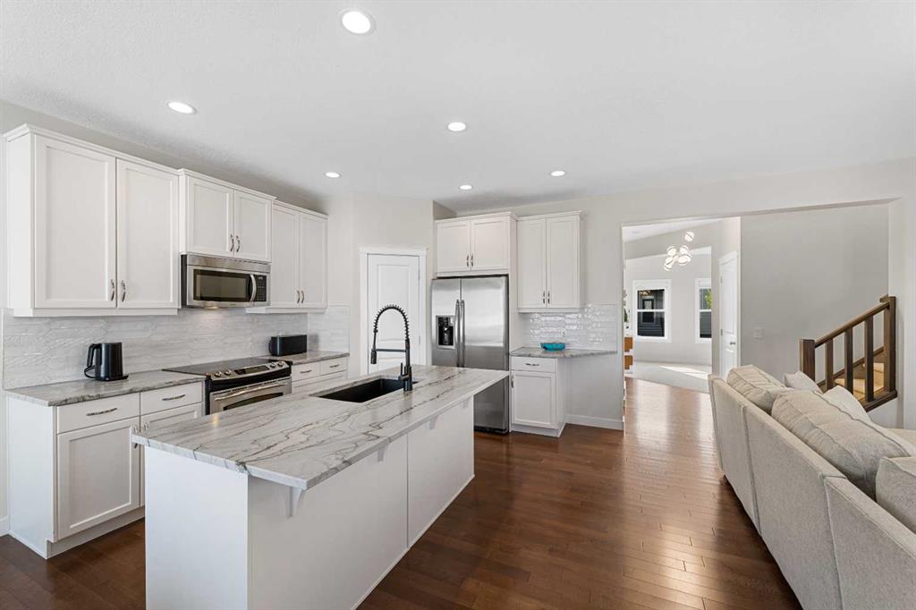 OPEN HOUSE SUNDAY SEPT 14th 2-5PM // Welcome to 105 Elgin Meadows Circle, a Beautiful 3 Bed, 2.5 Bath home with over 2000 sqft of MOVE IN READY space, a manicured lot and a mountain of upgrades! Step inside the front door to the spacious open concept that is flooded with natural light. The large and bright flex room offers the perfect space for a family room or a sunny home office. Hardwood floors throughout the kitchen, dining and living room area showcasing the ideal layout for entertaining or any busy family. The stylish updated kitchen (2023) comes with a custom Italian Quartz counter package, updated white cabinetry and backsplash, Corner pantry, new kitchen faucet and under-mount sink plus a quiet Bosch dishwasher (2023). The main floor ceiling has been upgraded to a knockdown finish and a Cartwright lighting package added throughout the home (2023). The Living room features an oversized picture window and a retiled gas fireplace (2023), plus custom European Drapery ceiling tracks installed in the living and dining area with new blinds on the main and upper floor (2024). The dining space has Large corner windows and connects to the back mudroom with access to the private deck and fenced yard. A dedicated main floor laundry room and a separate 1/2 bathroom for convenience. New Carpet/Underlay and fresh paint throughout the house (2025). New Cedar front porch with a Natural stone wrap (2025). Furnace upgraded with a commercial grade air filter and UV Light (2024), New High efficiency Hot Water Tank and Water Softener (2025) and for the hot summer days a new Lennox 4-ton Central Air Conditioner (2024). Upstairs you\'ll find three spacious bedrooms, full 4pc bath and an extra bonus room that can be used as a home office or TV flex room with a Juliet balcony. The large primary has an additional 4pc ensuite with a walk-in closet. Downstairs the partially finished basement is insulated and ready for any project. In the back you will find a double detached garage with an additional side trailer parking pad and gate. The back deck is ready for your BBQ hangouts or relaxing evenings in the backyard. Located in the highly sought-after community of Mckenzie Towne, you have easy access to the splash park, winter skating rink, playgrounds, schools, and transit. Mere steps away from the Environmental Reserve with walking/biking paths and ponds. Plus, you’re just minutes from High Street with many shops, grocery stores, restaurants and amenities. With a pile of fantastic features and new upgrades this home is truly MOVE IN READY with an unbeatable location. Contact a realtor now to view an incredible opportunity you won’t want to miss!
