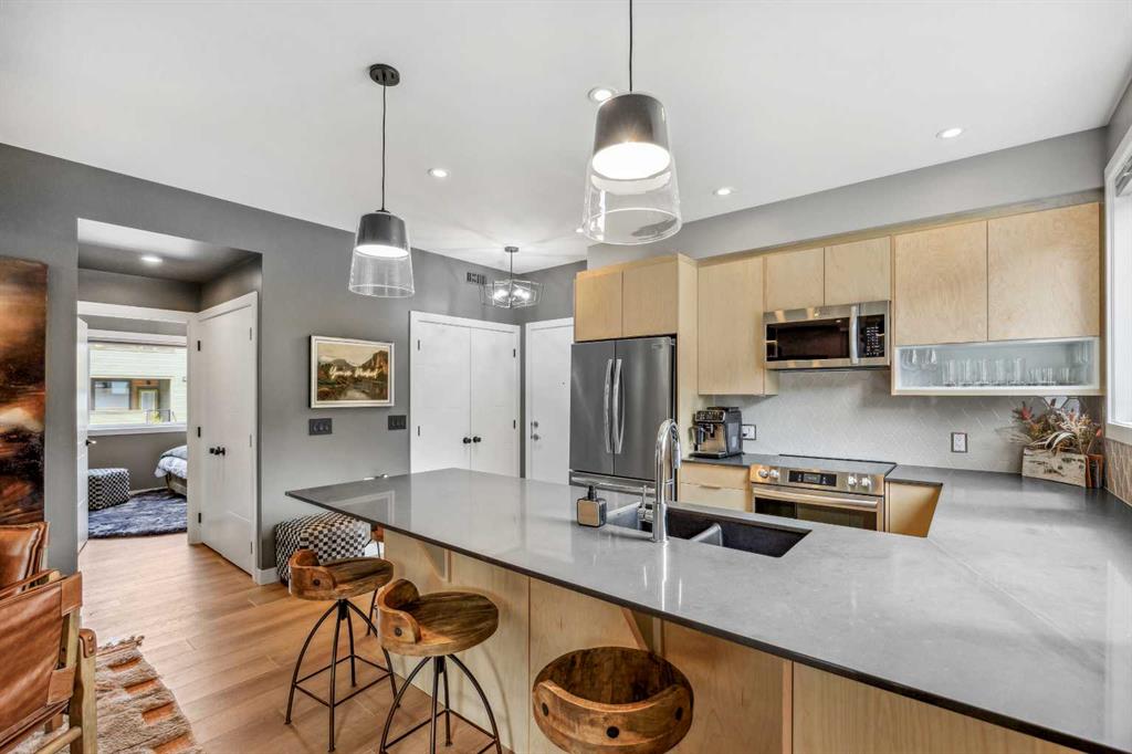 A car-and-a-half garage plus an adjacent oversized storage room offer plenty of space for all your mountain gear, bikes, and toys. Close to hiking and biking trails. The neighbourhood is about to become incredibly walkable with the addition of the grocery stores, cafe, and more at the new Gateway area.