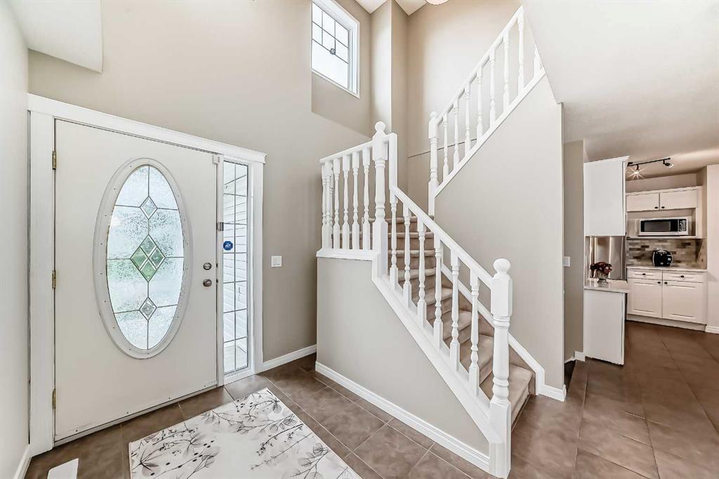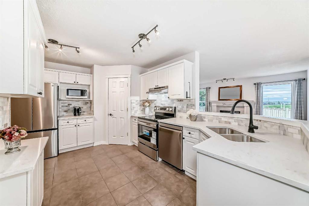 Public Open House Sunday (1:30 p.m.-4:30 pm). Welcome to this beautifully renovated 2-Storey home in the sought-after community of Hidden Valley. Featuring over 2100 sq. ft. of living space across three levels, this 4 -bedroom, 3 1/2 bath gem is move-in ready with front-drive double attached garage and a brand-new driveway. Extensive UPGRADES included freshly painted walls throughout the home.; gleaming new quartz countertops and new tile backsplash in every bathroom and kitchen; all brand-new stainless stainless steel kitchen appliances; new Lighting fixtures and bathroom flooring. Main floor with open-concept layout, bathed in natural light. The cozy living room features durable laminate floors and a gas fireplace. The renovated Kitchen boasts a bright extended breakfast nook, walk-in corner pantry and ample cabinetry and counter space for home chef. Upstairs, the spacious primary suite offers a walk-in closet and 5-piece ensuite with a Jacuzzi tub and separate shower. Two additional bedrooms and a 4-piece full bath complete the upper lever. The professionally fully-developed basement adds even more value, featuring a large family/recreation room; a fourth bedroom, a stylish 3-piece full bath with a custom stone-tiled shower and a storage area for family use. This property includes Central Air Conditioning for year round comfort and No Poly-B Plumbing for added peace of mind. This home is located on a quiet street near all amenities( schools, bus services and Hamptons shopping center), with a private backyard, spacious (22\'8\"x16\'6\") deck and valley view. To see is to appreciate. Property is vacant ready for immediate possession.