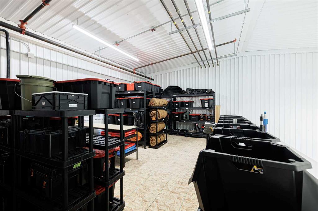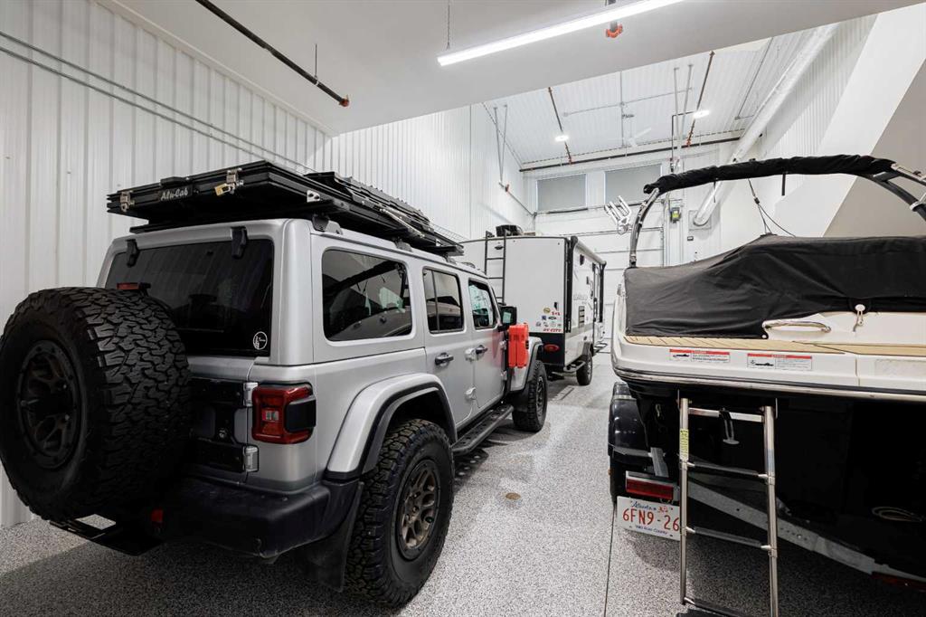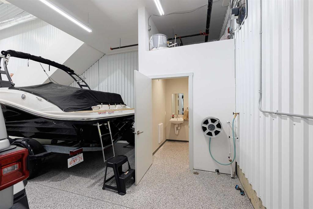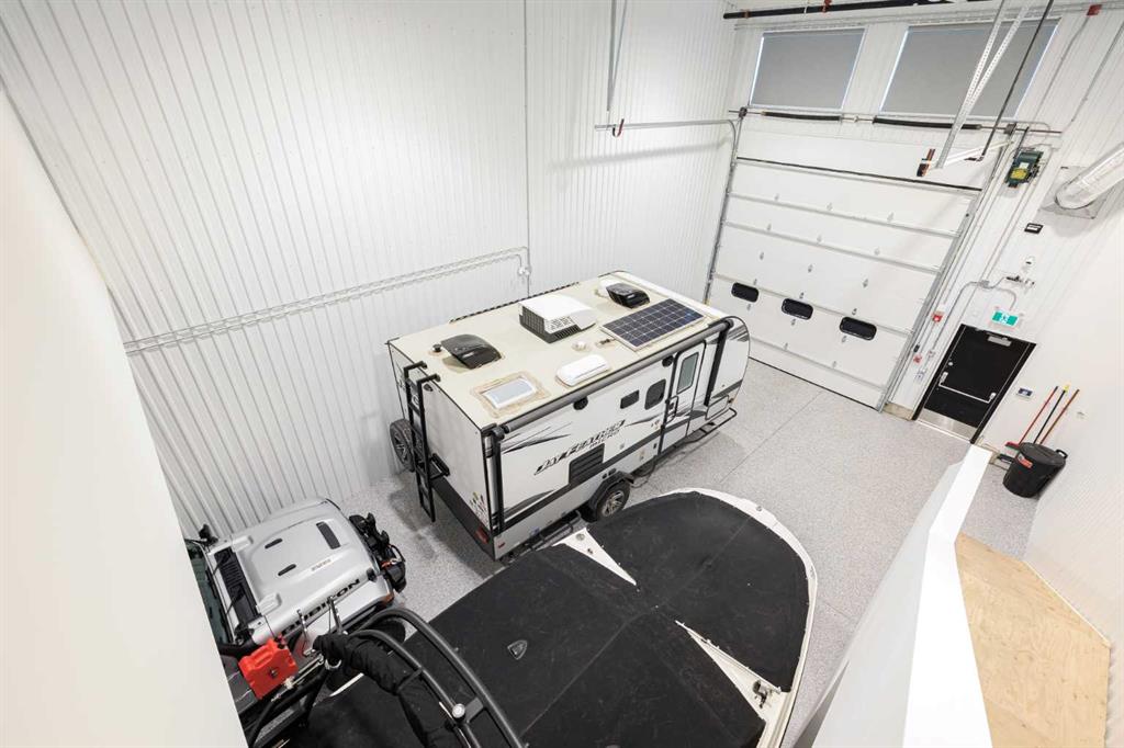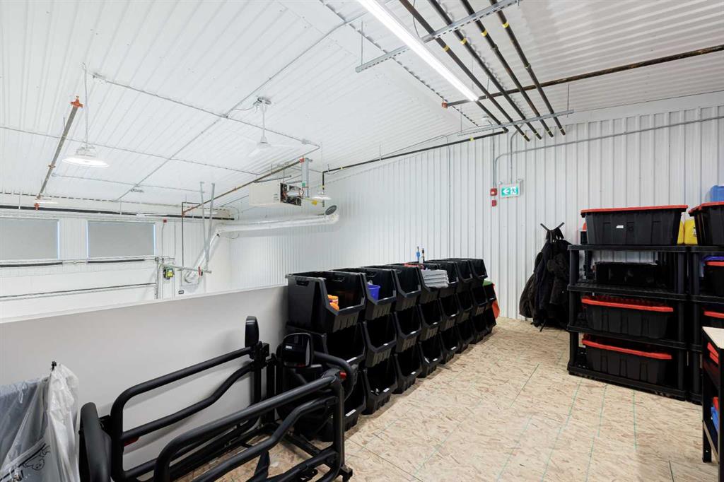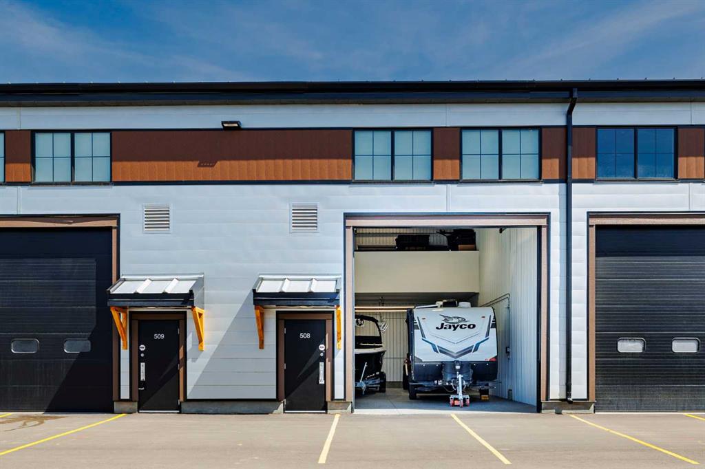 Discover the ultimate luxurious storage solution in the brand new bays at The Stables Signature Bays, conveniently located just off Highway 22x for easy access. These bays are commercially zoned creating versatility to be used for business or personal use. They have been thoughtfully designed with the highest quality build, constructed of steel, creating a longer lasting and higher durability design. This incredible space is designed to accommodate all your toys, from RVs to boats and beyond. Featuring polyaspartic flooring for durability and easy maintenance, along with 25-foot ceilings and 14x14-foot doors, every inch of this storage unit is optimized for functionality. With a 2-piece bathroom for added convenience and a man door entrance for easy access, storing and retrieving your belongings has never been easier. Plus, with parking space for two vehicles outside each unit, your vehicles are secure and accessible whenever you need them. This unit is heated and equipped with hot water, ensuring that your belongings are protected from the elements year-round. Say goodbye to clutter and hello to peace of mind with this unparalleled space. With the ability to add a wet bar or bathroom in the mezzanine, the possibilities to expand this space are endless!
