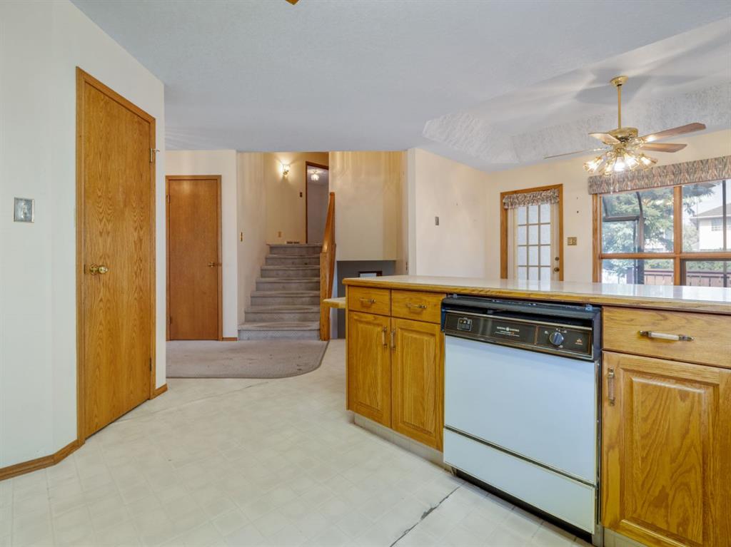 Use your own preferences in upgrading this home. Painting and floor coverings are required. Spacious 4-level split in a great West Lethbridge location offering 1,467 sq. ft. of living space on the upper two levels plus excellent lower-level development. The upper level offers a spacious primary suite with adjoining 3-piece ensuite, along with two additional bedrooms and a 4-piece bath. The third level hosts a convenient laundry area, an extra bedroom, 3-piece bath, and a very large recreation room complete with a gas fireplace. The fourth level offers a massive 35\' x 32\' storage area with plenty of potential. Beautiful oak wood trim, railings, doors, and coffered ceilings highlight the home’s original craftsmanship and remain in excellent condition. This home provides a great opportunity to update and add value. Call your favourite realtor to view.
