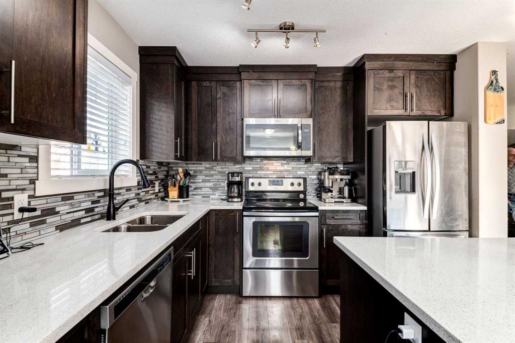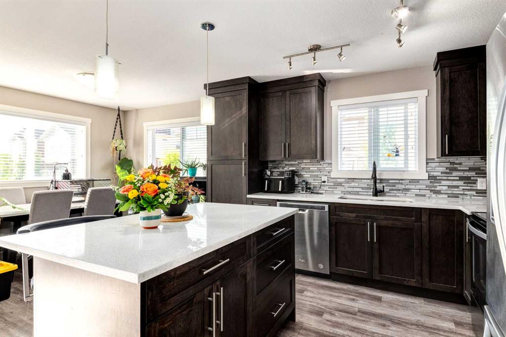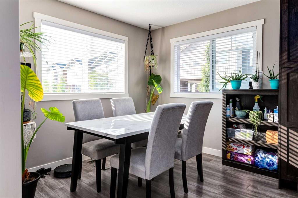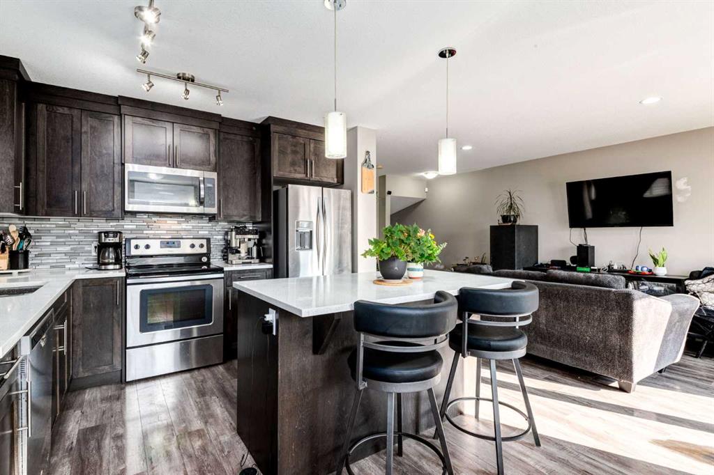 Former Showhome with lots of upgrades! Welcome to this 3 bedroom, 2.5 bath townhome in the family friendly community of Skyview. This corner unit home offers everything your family needs. Walking into the home you are greeted by a nice foyer with storage and ample closet space for your boots and coats. To the right is a well sized flex space, perfect for an office or play area. On the main floor is a thoughtfully laid out open plan, with your kitchen, dining room and living room blending seamlessly. The kitchen features upgraded backsplash, cabinetry and countertops for an elevated look. You can enjoy a morning coffee on the cute balcony off the living room. The main level is finished with a 2 piece guest bathroom and laundry room. Engineered hardwood and upgraded tile flow throughout. Headed up to the second floor you will find three nice sized bedrooms, including a bright primary with 3 piece ensuite and walk in closet. An additional 4 piece bathroom completes the second floor. This home has also been upgraded with A/C for those warm summer days, and LED lighting throughout. A single attached garage with room for one additional vehicle on the driveway allows for 2 car spaces. If you are looking for a great priced home, in a family friendly community, look no further than this beautiful home. Skyview is the perfect place to live with easy access to the airport, stoney trail and Cross Iron shopping, plus schools and amenities all nearby. With all the upgrades and space for your family, this home is sure to go quickly! Contact your realtor and book a showing today!