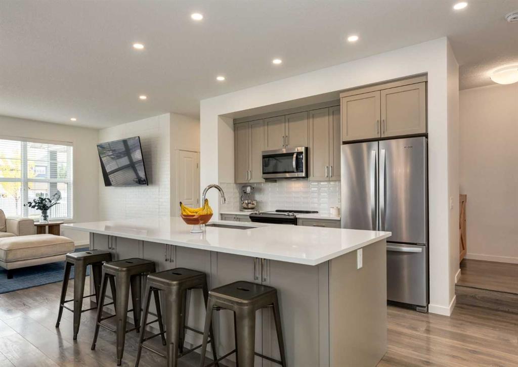Welcome to Your Dream Home in Mahogany! This stunning, move-in ready home sits on a large oversized corner lot in the community which offers incredible space, privacy and endless potential for outdoor living. From the moment you step inside, you will notice the bright, open-concept layout designed for both everyday living and stylish entertaining. The heart of the home is a chef-inspired kitchen featuring an oversized quartz island, upgraded cabinetry, stainless steel appliances and generous storage. Whether you are hosting guests or enjoying a quiet night in, this kitchen is made to impress. The main floor also offers a spacious dining area, a cozy living room and a stylish powder room, all enhanced by luxury vinyl plank flooring and designer feature walls that add a touch of modern sophistication. Thoughtful design continues with a welcoming foyer, a convenient mudroom and central air conditioning for year-round comfort. Upstairs, relax in your elegant primary suite, complete with a walk-in closet and a luxurious 4-piece ensuite featuring dual sinks. Two additional bedrooms, another full bath and an upper level laundry room add both functionality and ease to your daily routine. Step outside to your back deck with BBQ gas line, overlooking a massive backyard which is perfect for entertaining, playing, or simply enjoying your own private outdoor oasis. Located just steps from Mahogany Lake and the Beach Club, you will enjoy exclusive access to beaches, paddle boarding, a fire pit and more. Plus, you are minutes from Stoney Trail, top-rated schools, shopping, dining, Seton YMCA, South Health Campus and all the amenities that make Mahogany one of Calgary’s most sought-after communities. This beautifully maintained home checks all the boxes - location, lifestyle and luxury. Don’t miss your chance and schedule a private showing today!