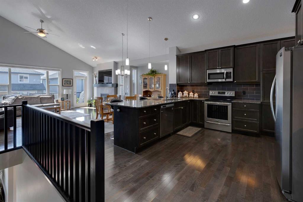 Welcome to this beautifully maintained 4-bedroom, 2.5-bath bungalow located in the sought-after community of Heritage Hills, Cochrane. Offering partial mountain views from the back deck, this spacious home blends functionality, comfort, and elegance across 1,521 sq ft on the main level and an additional 1409 sq ft in the fully finished basement.