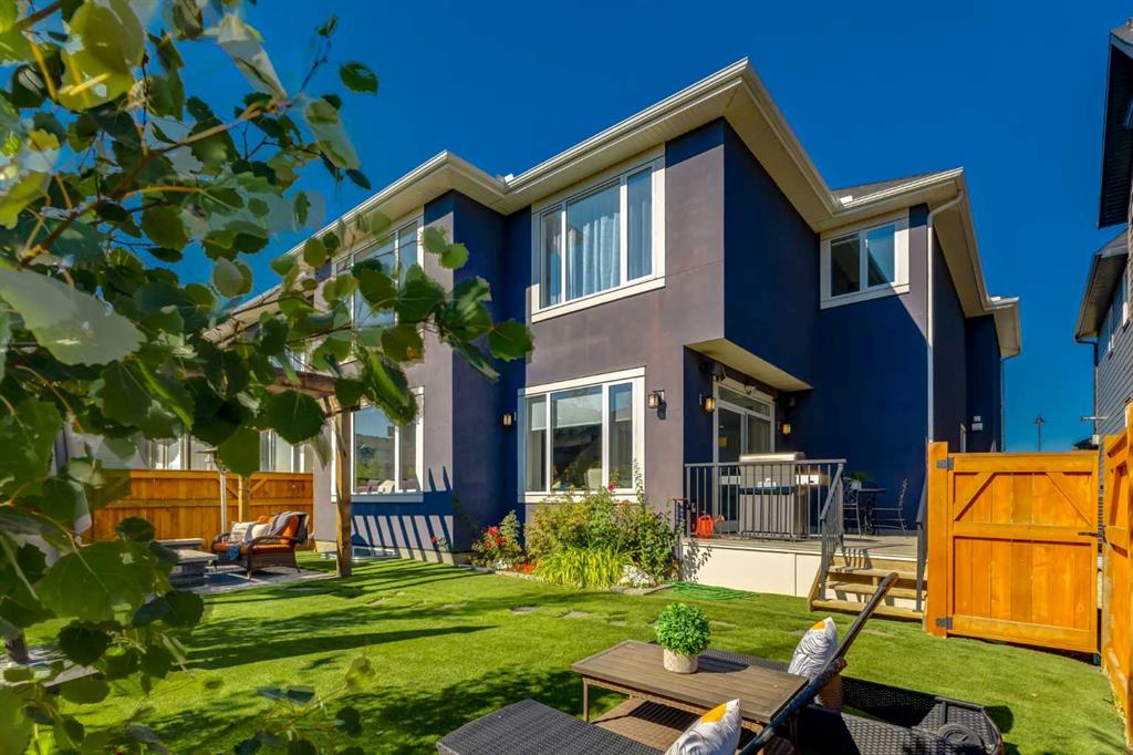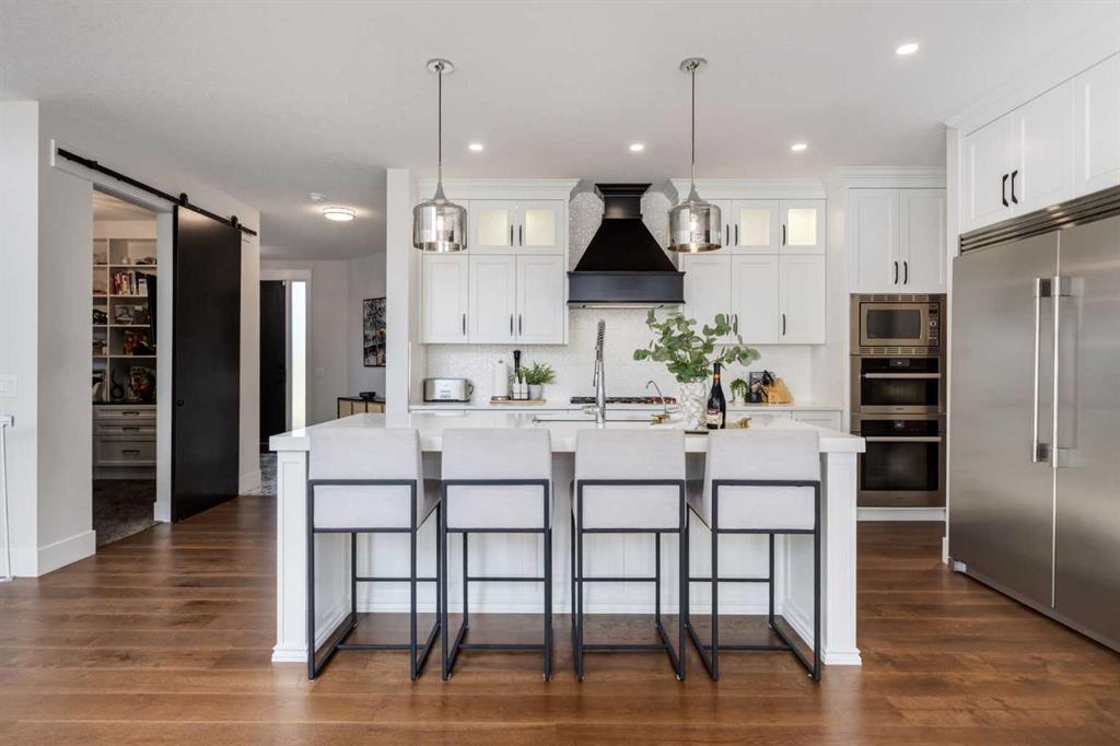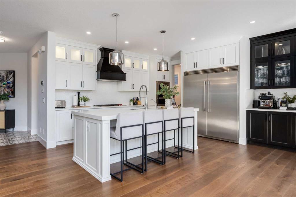 OPEN HOUSE SATURDAY, OCTOBER 4TH, FROM 2PM TO 4PM. Experience this exceptional modern family residence, perfectly situated in the prestigious SW community of Aspen Estates. Built in 2019, this exquisite home offers over 4,400 square feet of developed living space and features a stunning, private, and professionally landscaped backyard retreat. The outdoor oasis is complete with lush greenery, mature trees, an outdoor fireplace and a convenient gas line for entertaining friends and family. Inside, the residence showcases a thoughtfully designed layout with four spacious bedrooms and beautiful details throughout. The gourmet kitchen is a chef’s dream, appointed with top-of-the-line appliances including a five burner Wolf gas cooktop, custom Faber hood fan, dual Miele ovens, and an oversized integrated fridge and freezer. Timeless quartz countertops, a gorgeous white tile backsplash, an expansive walk-in pantry, and a welcoming breakfast bar make this space perfect for busy mornings and family meals. A versatile main floor den offers the perfect option for a home office or playroom, while the formal dining area shines beneath a striking crystal accented chandelier and detailed coffered ceilings. The heart of the home is the inviting great room, anchored by a floor-to-ceiling white stone gas fireplace and framed by soaring dramatic ceilings. A sweeping curved staircase leads to the upper level where the serene primary suite awaits in its own separate wing. Boasting vaulted ceilings, a romantic double-sided fireplace, and beautiful south sunshine streaming through the sheer draperies. The primary suite also features a spa-like ensuite with heated porcelain floors, a luxurious soaker tub, steam shower, double vanities, and a make-up desk. Two additional bedrooms and a cozy bonus room provide ample space for family living, while the conveniently located upstairs laundry room adds ease and practicality to daily routines. The lower level is designed for both relaxation and entertaining. Indulge in the sleek wet bar adjacent to a climate-controlled wine room, host family movie nights in the spacious family room, or focus on wellness in the dedicated home gym. A large bedroom, full bathroom, and generous utility room complete the lower level. Additional highlights include a triple car garage offering exceptional storage and an artificial turf backyard. Aspen Estates is an unbeatable location just minutes from Calgary’s top private schools, boutique shopping, and an array of amazing restaurants and amenities. This residence is more than a home. It is a perfect blend of modern luxury, comfort, and timeless design, ideally suited for family living.