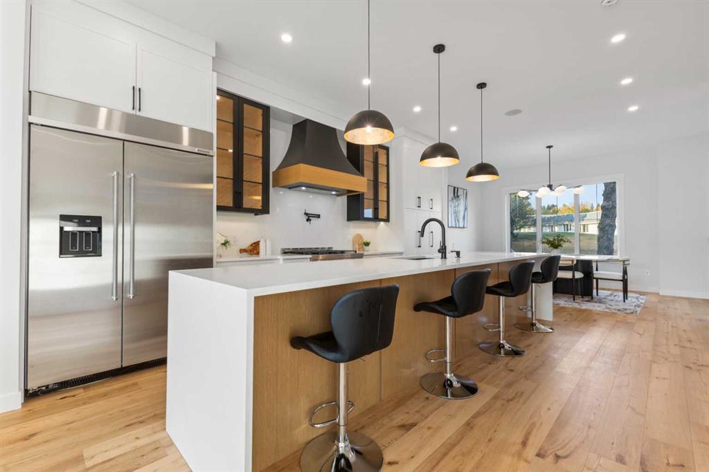 This BRAND NEW, MOVE-IN READY infill in MONTGOMERY checks all the boxes for stylish, functional inner-city living—with the added bonus of a fully private 1-BED WALKOUT SUITE (approved with permits and subject to final inspection). Whether you\'re looking for extra income, space for guests, or a little more flexibility in your day-to-day, this one delivers. Step inside to a bright, welcoming foyer with a full coat closet—simple, clean, and easy to come home to. At the front of the home, the dining area offers space for a full-size table and flows naturally into the heart of the home: the kitchen. The kitchen brings a timeless feel with classic SHAKER-STYLE CABINETS, a custom-built hood fan with oak accents, glass display shelves with LED lighting, and a quartz-topped island with waterfall edges. You’ll also find an upgraded KITCHENAID APPLIANCE PACKAGE, including a gas range with pot filler and a large KitchenAid French door fridge. There’s also a convenient coffee or beverage station, complete with room for a beverage fridge. The living room is warm and elevated, featuring an INSET GAS FIREPLACE with full-height tile surround and built-in display shelving with closed cabinetry for extra storage. Natural light pours in through large rear sliders, leading out to the sunny SOUTHWEST-facing back deck with privacy screens already installed. Off the rear entry, the mudroom includes built-in shelving, a bench, and cubbies, with access to the powder room—private, polished, and finished with a skirted quartz counter and decorative framed mirror. Upstairs, the primary suite is a calm retreat with a tray ceiling, spacious walk-in closet, and a stunning ensuite that includes a freestanding soaker tub, walk-in shower with DUAL RAIN HEADS, and double vanity. Two more bedrooms, a full bath with attractive STACKED HORIZONTAL TILE, and a laundry room with designer tile flooring complete the upper level. Downstairs, the WALKOUT SUITE (approved, subject to final inspection) is bright, smartly designed, and full of quality finishes. The living room has a BUILT-IN FLOATING MEDIA CENTRE, and the full kitchen mirrors the same modern style as upstairs, with warm oak flat panel cabinetry and quartz countertop. There’s a full bathroom, stacked laundry, and a large bedroom with walk-in closet—plus its own separate entry for total independence. Set just off Home Road, this location offers easy access to main routes like 16th Ave and Memorial Drive while keeping you steps from nature. Walk to Shouldice Park, Bowmont Park, and the Bow River Pathway system for daily runs, dog walks, or weekend bike rides. You\'re minutes from Montalcino Ristorante, NOtaBLE, and lots of local coffee shops, restaurants, and bars for food and coffee favoUrites. Groceries, schools, Market Mall, U of C, and Foothills Hospital are all close by, making this one of Calgary’s most livable and up-and-coming inner-city communities. Call today to view! *Photos from Show Suite