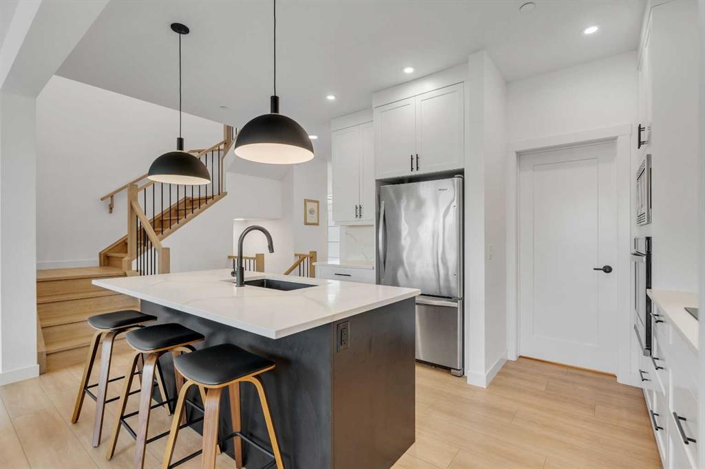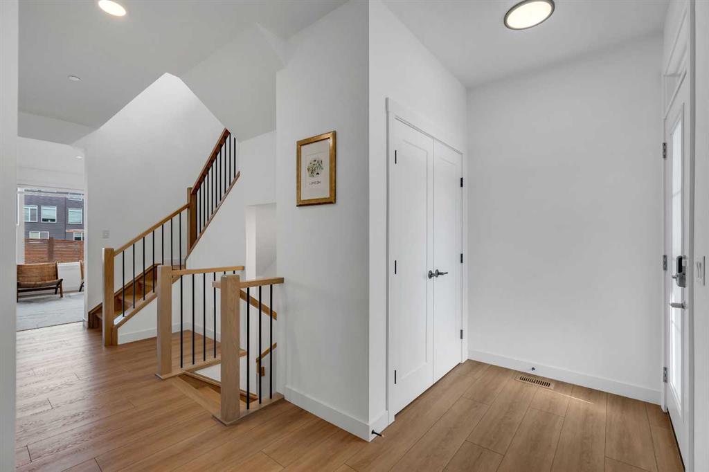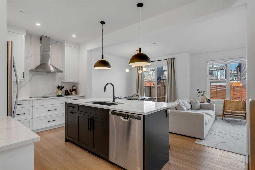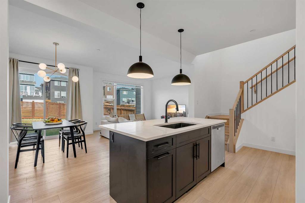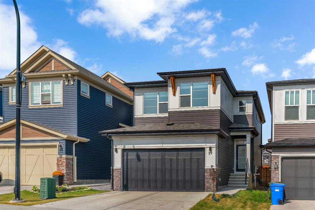 MODERN 2,600+ SQFT FAMILY HOME W/ FINISHED BASEMENT, A/C & DOUBLE GARAGE IN DESIRABLE LIVINGSTON! Set on a quiet street steps from parks and greenspace, this magazine-worthy 4-bed/3.5-bath property blends picturesque high-end finishes with practical family comfort. Welcome to 29 Calhoun Crescent NE — a beautifully finished, move-in ready home offering over 2,600 SQFT of developed living space across three elegant levels. Walking in, the open-concept main floor is bright and inviting, featuring sandstone wide-plank vinyl floors and sleek onyx black accents. At the heart of the home, the gourmet kitchen is sure to impress with Quartz counters and matching full-height marble veined backsplash, full-height cabinetry, & sleek built-in stainless steel appliances. The cherry on top is a custom walk-through pantry by California closets, that connects to the mudroom and attached double garage. Further into the space is a cozy living room for family movie nights equipped with A/C for hot summer days, and a dining area that flows out to the spacious yard which is already fully fenced. A 2pc powder room for guests rounds out the main floor. Upstairs, a flexible family/bonus room separates the kids’ wing from the serene primary retreat. The master bedroom is complete with a custom walk-in closet by California closets and an elegant 5-pc ensuite with dual vanity sinks. Two additional bedrooms share a 4-pc bath, while a convenient upstairs laundry room rounds out the upper floor. The fully finished basement expands your options with a large rec room, currently being used as a gym area, a 4th bedroom, a full 4-pc bath, and plenty of extra storage space. Outside of the home, you can explore the many outdoor amenities Livingston has to offer including nearby Livingston Hill Park & Playground which is just a short stroll down the block. Or head down to the Livingston Hub - one of Calgary’s premier community hubs. The 35,000 SQFT recreation centre is exclusive to Livingston residents, featuring outdoor rinks, splash park, tennis courts, gym, amphitheatre, daycare spaces, banquet facilities, summer camps and more. Easy access to the rest of the city is available through several major roadways including Stoney Trail, Deerfoot Trail & Harvest Hills Blvd. Jumping in the car: Downtown is a 20 min drive (24 KM), Airport is a 12 min drive (13 KM), & Banff is a 1 hr 22 min drive (132 KM).