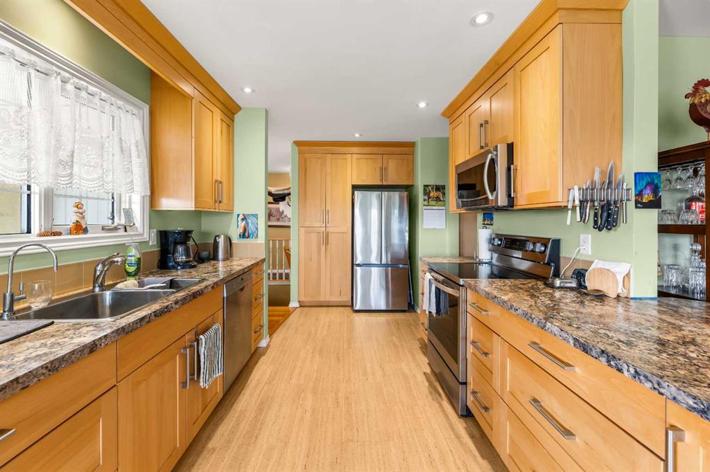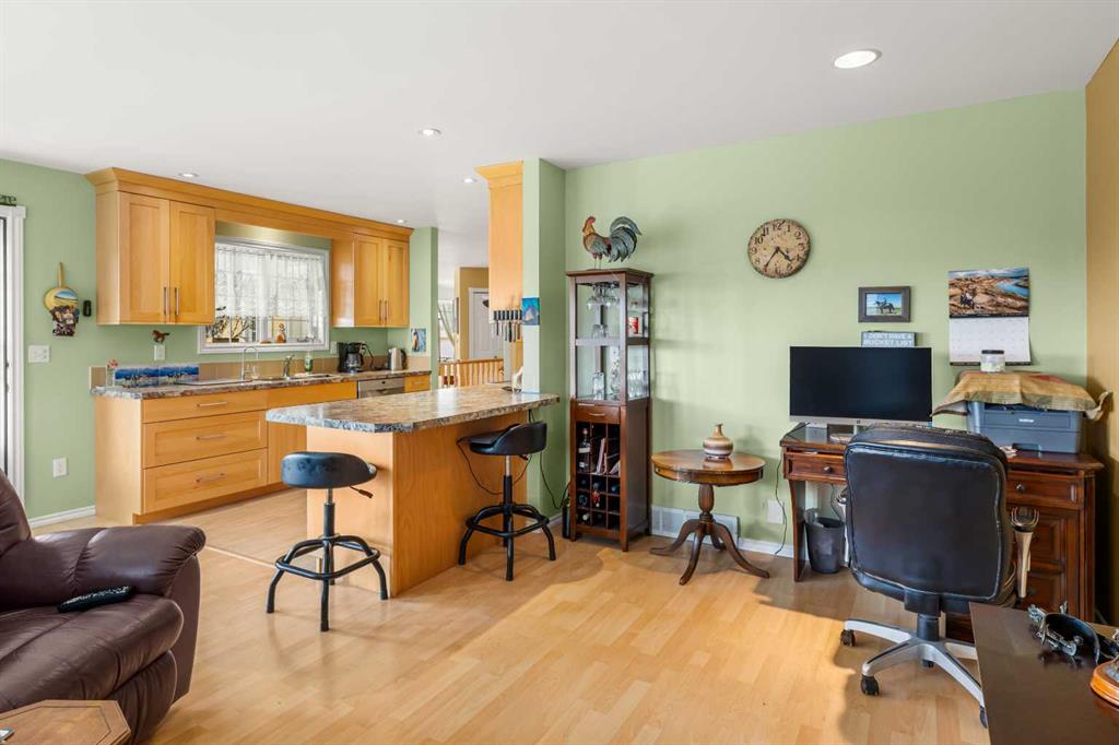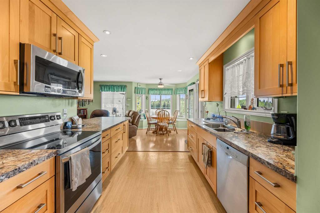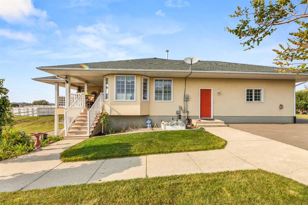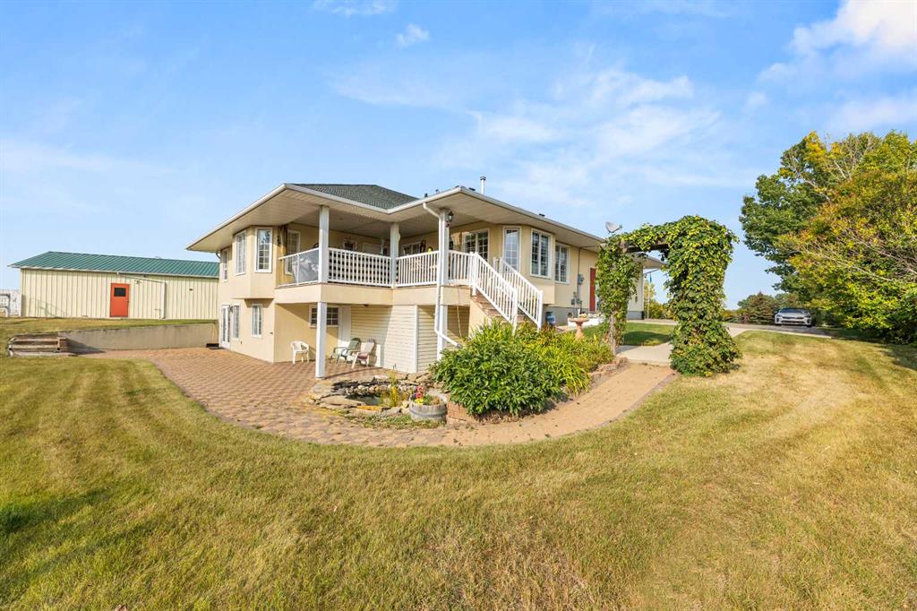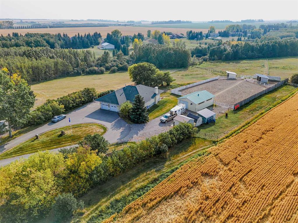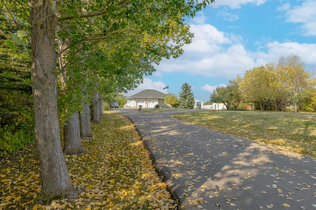 THIS COULD BE YOUR NEXT HOME!! If you are looking for an acreage on the edge of Didsbury and a private, secluded place to call your next home you will want to check out this exceptional property! The access is completely paved and as you enter the property you will notice the circular driveway and immaculate landscaping. This home has undergone renovations over recent years and has a view that is just UNREAL!! Step inside and you will appreciate the attention to detail and lots of thoughtful features. The kitchen was upgraded 5-6 years ago and has maple cabinets and the nicest spot to sit and enjoy that view. There is a sitting/family room ,living room with hardwood floors, formal dining room with bay window/bench seat and main floor laundry with half bath and sink. There is a large primary bedroom with walk in closet and 3 pc ensuite plus another bedroom, main bath and welcoming entrance. The walk out basement does has a legal suite but could be opened up again if you needed the whole home to live in. This area has a lovely stone terrace with pond out back which would be a great place to take in more of that view. It also has a kitchen with dining area, family/living room, 2 bedrooms, bathroom, laundry and mechanical room (lots of storage here too!). The yard is a great place to have a few horses since there are 2 horse shelters and a shop/barn with concrete floors and overhead heat. There is also a few sheds and cross-fencing and lots of wide open spaces. This is a very quiet, secluded property yet it is just on the edge of town so you truly have the best of both worlds here. Picture yourself on the deck or stone terrace having your morning coffee and soaking in the quiet, beautiful yard. This time of year it is so lush and green and it is equally pristine in winter too! So many great features in a really great location. Call today to book your viewing and check it out for yourself!