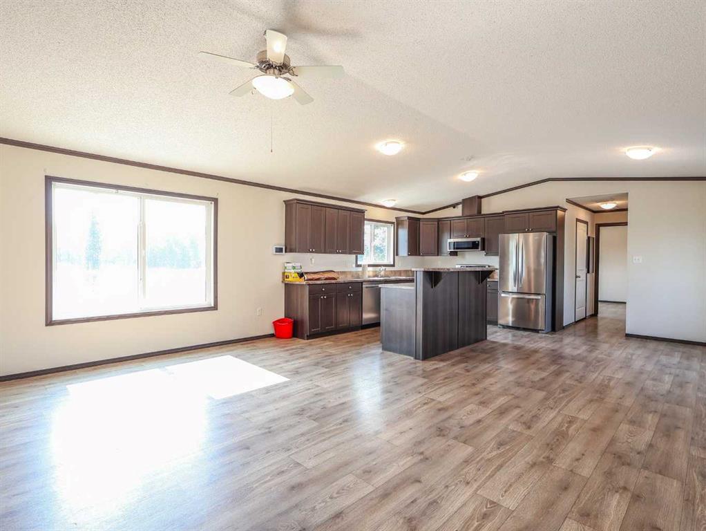Located right on Highway 601, this well-cared-for farm consisting of 84.39 acres, combines a bright, 2013 home with a fully functional farmyard—ideal to add to your farming operation, great for hobby farmers, or anyone wanting extra space and flexibility. Wide open views of farmland and trees surround the property, offering peace and prairie charm from every angle. The home is in excellent condition, immaculately maintained, and filled with natural light. It features vaulted ceilings, large windows, wood-look flooring, and light-colored walls throughout. The spacious kitchen boasts plenty of cabinets, stainless steel appliances, and a tiered island, all open to the dining area and huge living room. The primary suite includes a walk-in closet and 3-piece ensuite with walk-in shower. Three additional bedrooms and a full 4-piece bathroom provide plenty of space for family or guests. The back entry offers convenient laundry hookups and storage. Outdoors, the yard is low-maintenance with lots of parking and plenty of grass. There are two large decks at the front and back entrances creating a variety of locations to unwind and enjoy the scenery. The backyard has expansive views of the farmland beyond. The farmyard on either side of the house offers excellent functionality and includes a 60’ x 38’ barn, 60’ x 42’ open bale shed, storage shed with metal siding, 3 stock waterers, and steel corrals, making it ideal for small livestock, equipment storage, or hobby farming ventures. The farmland is currently seeded down to hay. This property is conveniently located between Stettler and Alix, and is a short commute to Red Deer. This is a great property which blends modern living with practical farmyard infrastructure—an excellent opportunity for those seeking both comfort and versatility.