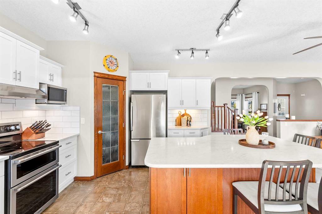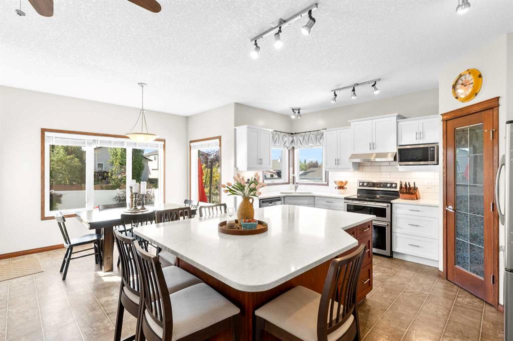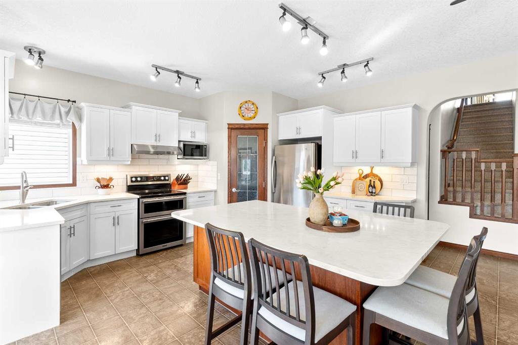 A bright HOME OFFICE is located at the front of the home with TWO LARGE WINDOWS. Upstairs, you’ll find FOUR BEDROOMS, COMPUTER NOOK for homework or family use, and a spacious PRIMARY BEDROOM with a PRIVATE ENSUITE. Large windows throughout bring in lots of NATURAL LIGHT, and all window coverings and curtains are in excellent condition.