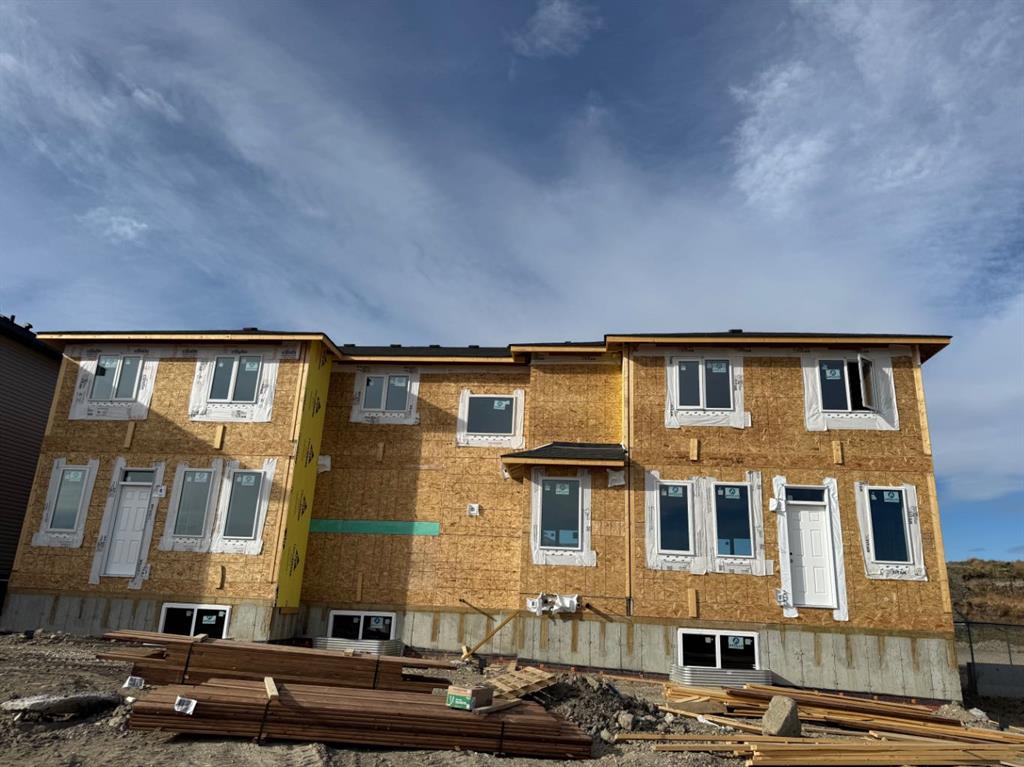 This new construction Triplex Home in the Town of Crossfield AB that is under construction and scheduled for completion in the end of 2025. This purpose-built home has spacious 3 bedrooms and 2.5 bathrooms, OFFICE/DEN on main floor, modern kitchen and island, front porch, back yards and sun deck. Well designed living space with modern appliances and finishes, 2nd floor laundry, Rear lane access and 2 car parking pad. Crossfield is a quiet and rapidly growing town which has well rated one elementary and one high school, day care, golf course, parks, playgrounds, and other amenities. Strategically located near Airdrie that\'s 10 minutes drive to Superstore, Balzac, 30 minutes to Calgary Airport and close to Highway 2 for commuting.