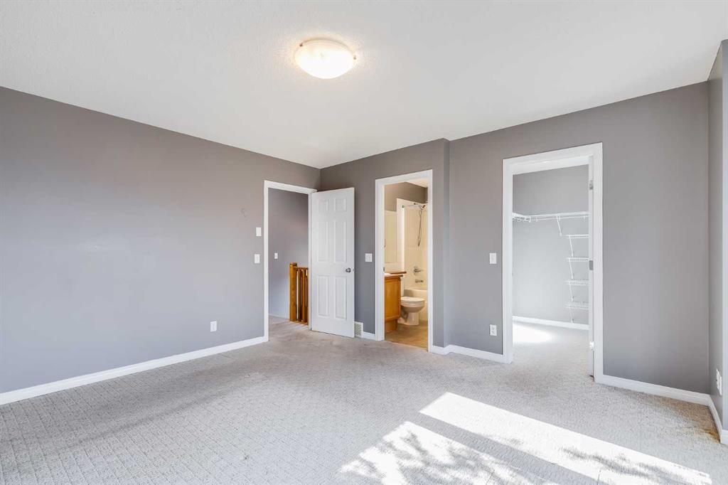 With over 2,500 sq. ft. of developed living space, this two-storey home offers 4 bedrooms, 3.5 bathrooms, and the benefit of having only one neighbour beside you on a giant pie-shaped lot in Coventry Hills. A heated double detached garage, RV parking with a convenient alley layout, and a large backyard make this property both functional and versatile. The open-concept main floor is designed for everyday living and entertaining, with laminate flooring in the dining room and large windows that fill the home with natural light. The living room is anchored by a three-way gas fireplace that connects seamlessly to the dining area, creating a warm, inviting atmosphere. The kitchen is both functional and spacious, featuring an island with seating, a corner pantry, and extensive cabinetry and counterspace. A two-piece powder room completes the main level. Upstairs, the primary retreat offers a walk-in closet and a four-piece ensuite for added privacy. Two additional bedrooms, each with their own walk-in closet, share another four-piece bathroom, providing plenty of room for family or guests. The finished basement expands the living area with a large recreation room, an additional bedroom, and a three-piece bathroom featuring an oversized tiled shower with a bench and glass doors. A dedicated laundry room and extra storage complete this level. The backyard is a highlight of the property, with a large deck for barbecues and outdoor gatherings, a massive grassed area for play, and the 25x23 heated garage offering workshop potential or space for vehicles. The RV parking pad accommodates units of any size, with a wide alley configuration that makes maneuvering easy. Located in the desirable community of Coventry Hills, this home is steps from the walking and biking paths of Nose Creek Park, and close to playgrounds, green spaces, and schools. Coventry Hills School, Nose Creek, and North Trail High School are all within walking distance. The location also offers quick access to Stoney Trail and Deerfoot Trail, with the shops, restaurants, and services of Country Hills only minutes away. Transit options are nearby, and the airport is only 15 minutes away. Take advantage of your opportunity to see this incredible property in person, book your showing today! Be sure to check out the floor plans and 3D tour for a closer look before your visit.