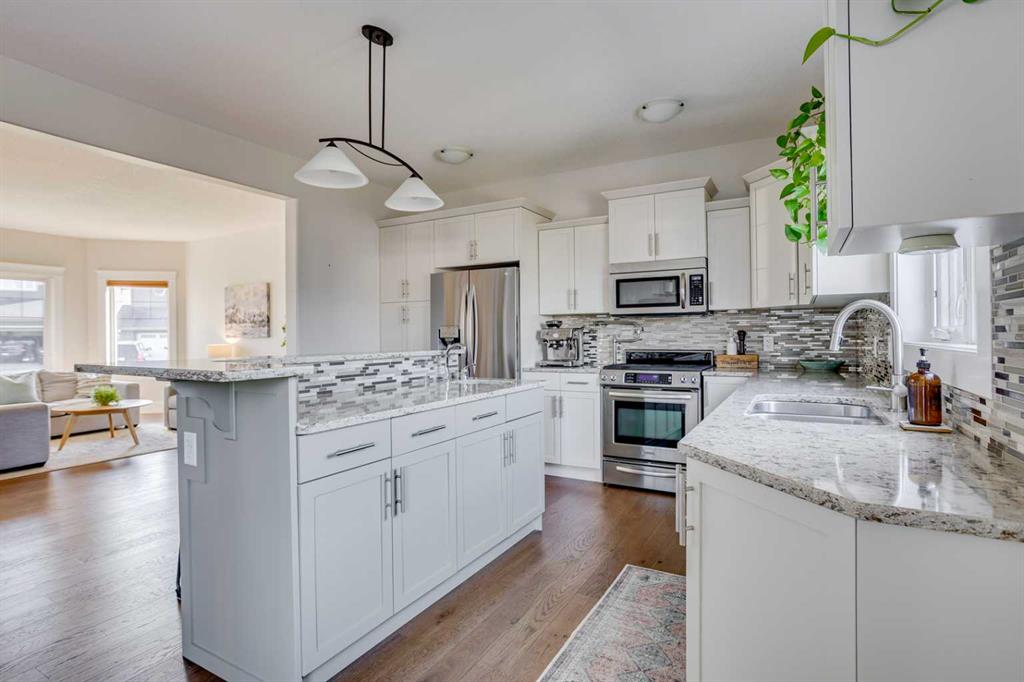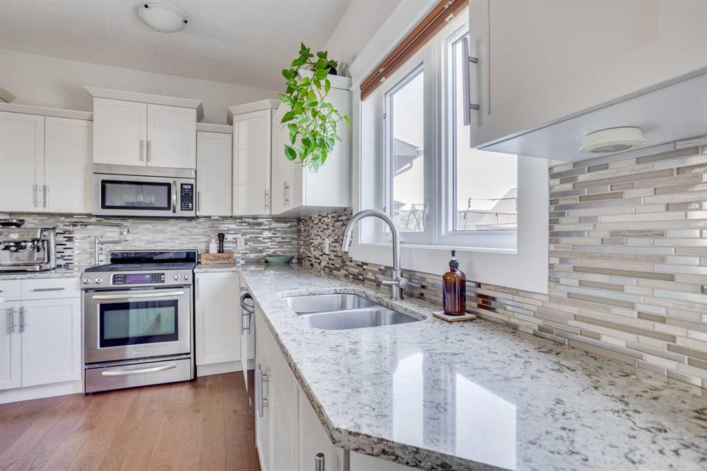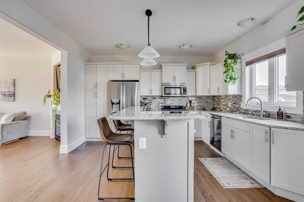 Immaculate Condition! No Carpet! Legal 1-Bedroom Suite! Welcome to 136 Falcon Drive – a beautifully maintained 2-storey home located directly across from the serene Falcon Green. This property offers a perfect blend of functionality and elegant design, making it ideal for families or an investor. Step inside and be greeted by a spacious front foyer with high ceilings and abundant natural light. The open-concept main floor is designed for comfort and practicality, featuring main floor laundry, two backyard access points (from the mudroom and kitchen), and a stylish gas fireplace in the generously sized living room. The chef’s kitchen is equipped with stainless steel appliances, two sinks, and ample cabinet and counter space, all while offering a clear view of the fully fenced and landscaped backyard. Upstairs, you’ll find three large bedrooms, each with plenty of closet space. The primary suite is a true retreat, complete with a recessed ceiling, walk-in closet, two additional closets, and a luxurious ensuite featuring dual sinks, jetted tub, and shower. The basement is fully permitted for a legal 1-bedroom suite — perfect for rental income or extended family. It includes a large living room, full bathroom, spacious bedroom, and storage area, but can also serve as an excellent rec space. Enjoy outdoor living on the two-tiered deck with natural gas BBQ hookup, overlooking the private, great sized yard. Recent Updates Include: New hardwood flooring (2023) – NO carpet throughout | Fresh interior paint (2022) | Luxury vinyl plank in basement (2022) | New fridge (2023) | Main floor new washer & dryer (2025) | Central A/C.