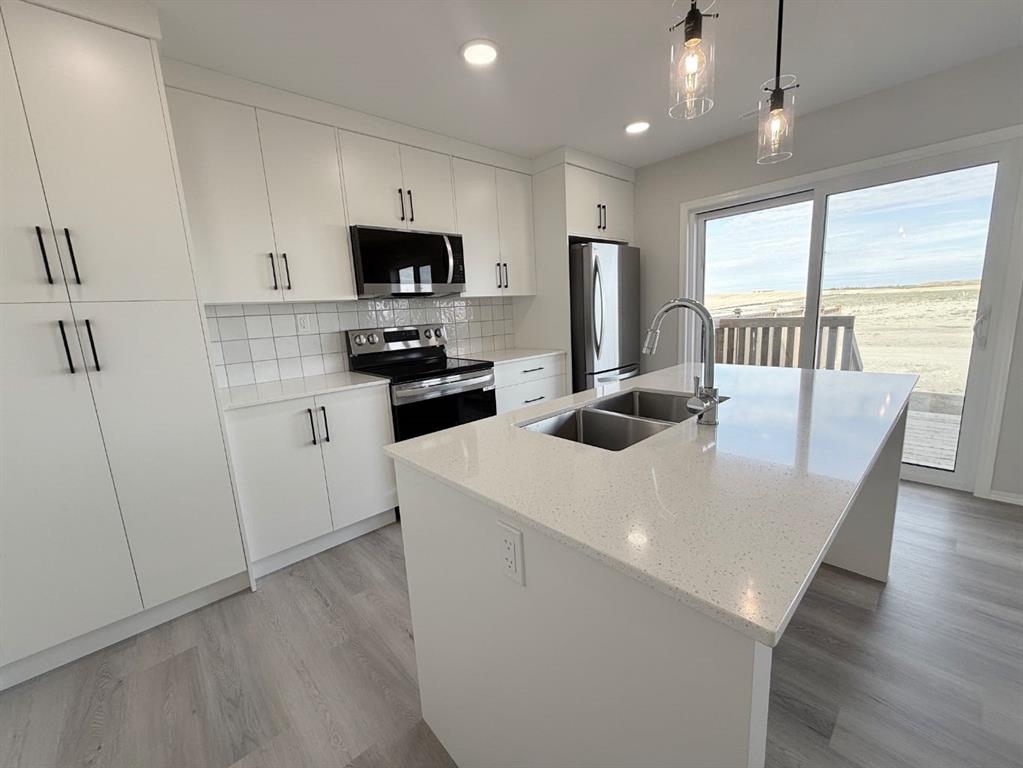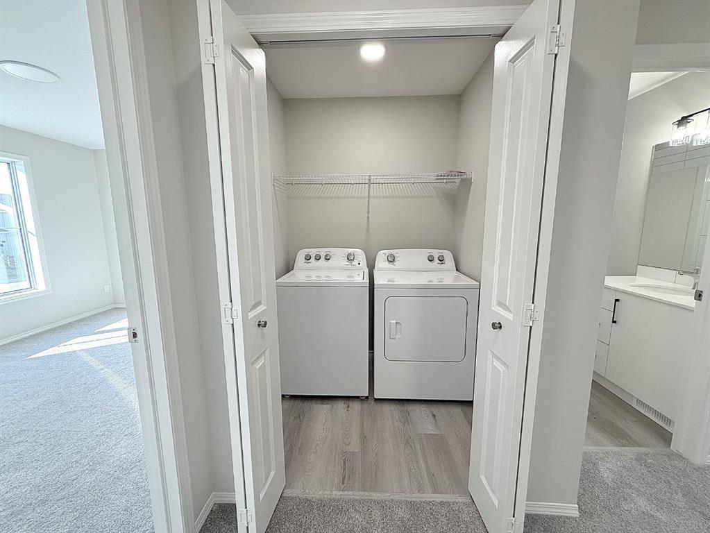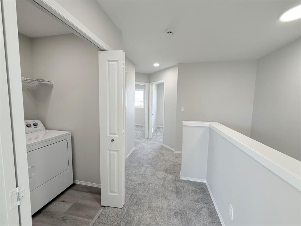 AVAILABLE IMMEDIATELY. Thoughtfully planned 3-bedroom, 2.5-bathroom townhome in Aspen Lakes West! This modern townhome offers functional living across two levels, with the additional benefit of a fully developed 1-bedroom legal basement suite. Enjoy a spacious kitchen with a center island, open dining and living spaces for gathering, and three generously sized bedrooms upstairs. The primary bedroom includes a walk-in closet and ensuite, while the upper-floor laundry adds ease to your daily routine. Large windows bring in natural light throughout the home, creating a bright and welcoming atmosphere. Outside, the deck, fencing, and sod are already completed, so you can move in and start enjoying right away. Both the main home and basement suite are equipped with their own washer and dryer, giving each space added convenience and independence. This home is ideally located within walking distance to schools, the Abbey Centre, skate park, BMX and bike skills park, and nearby shops and conveniences.