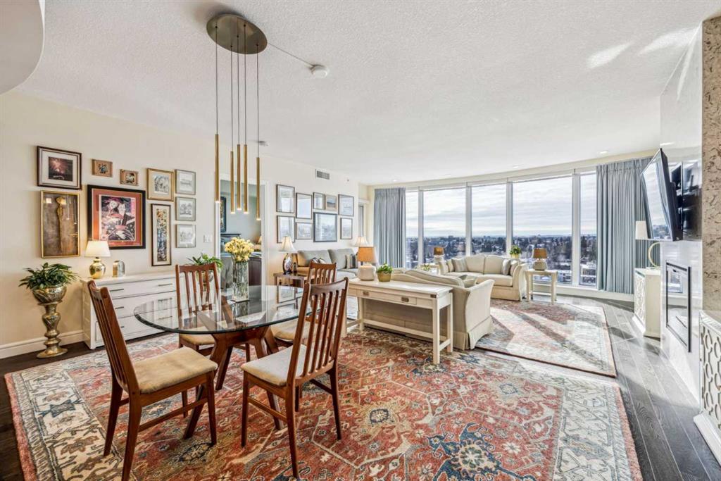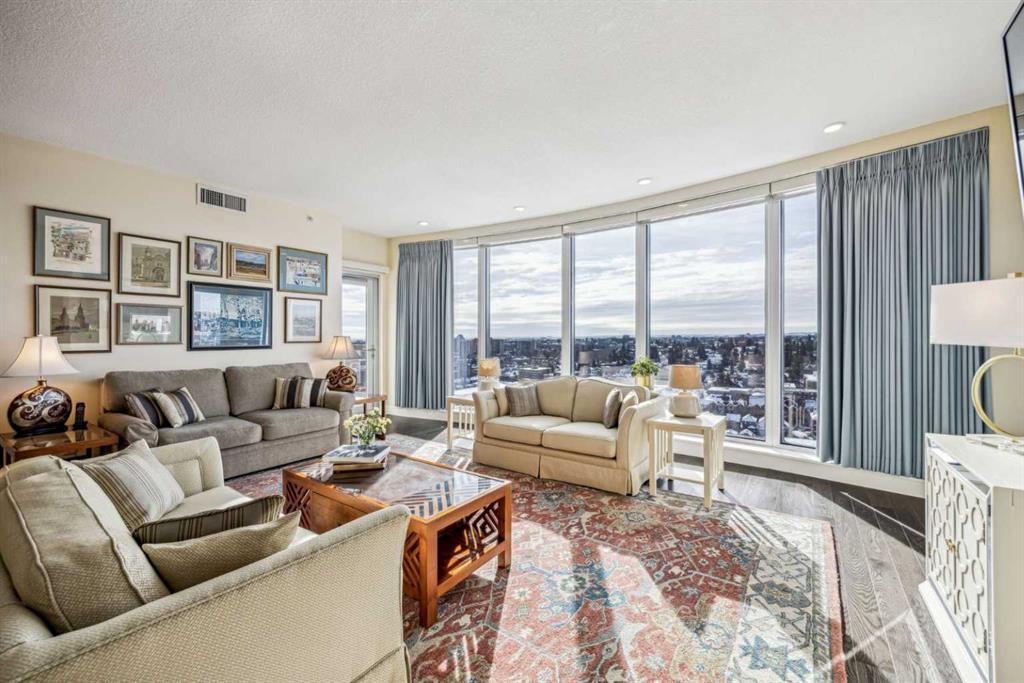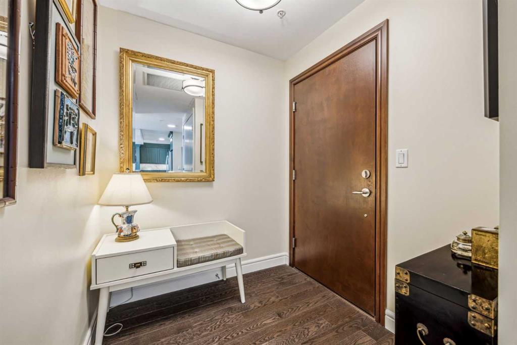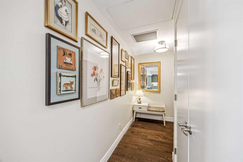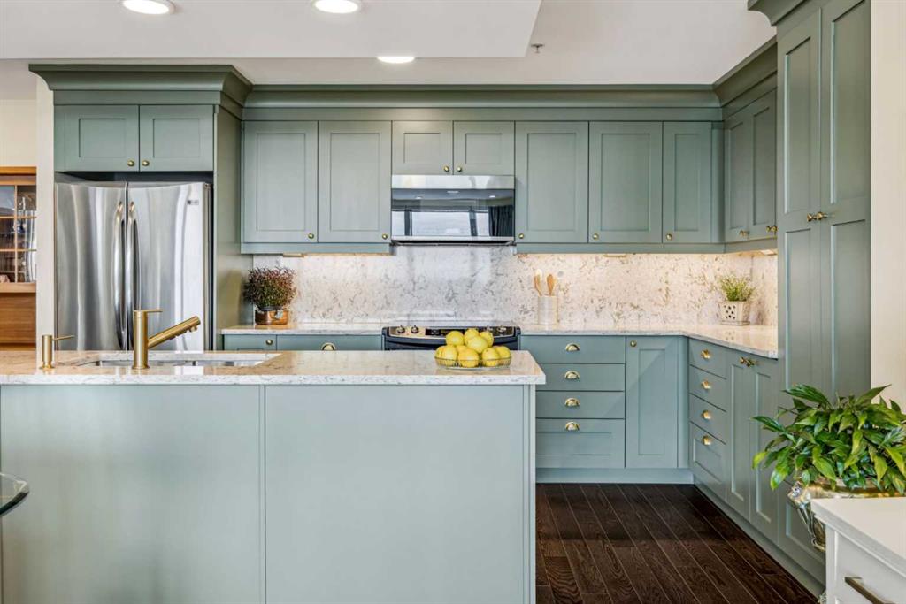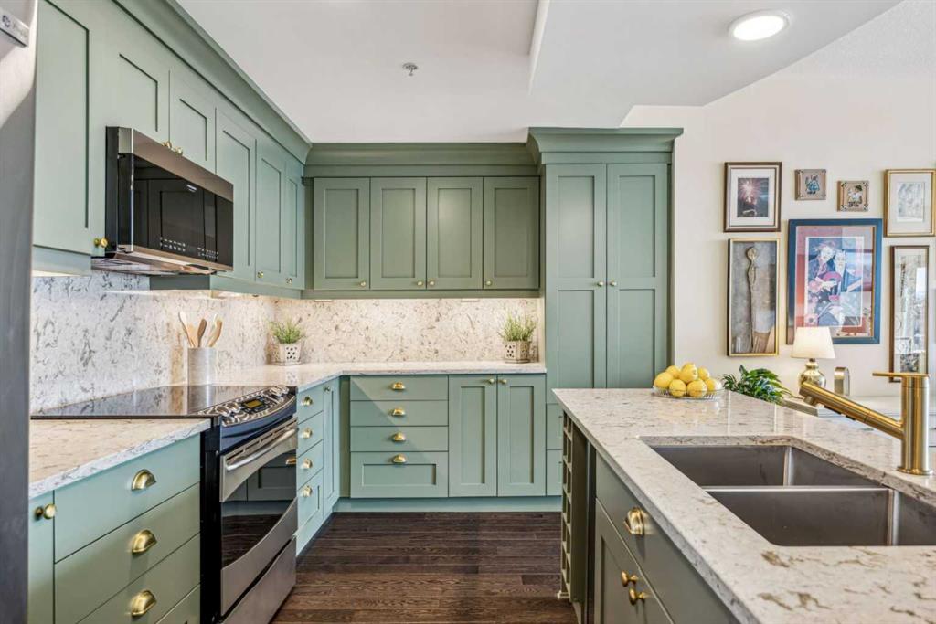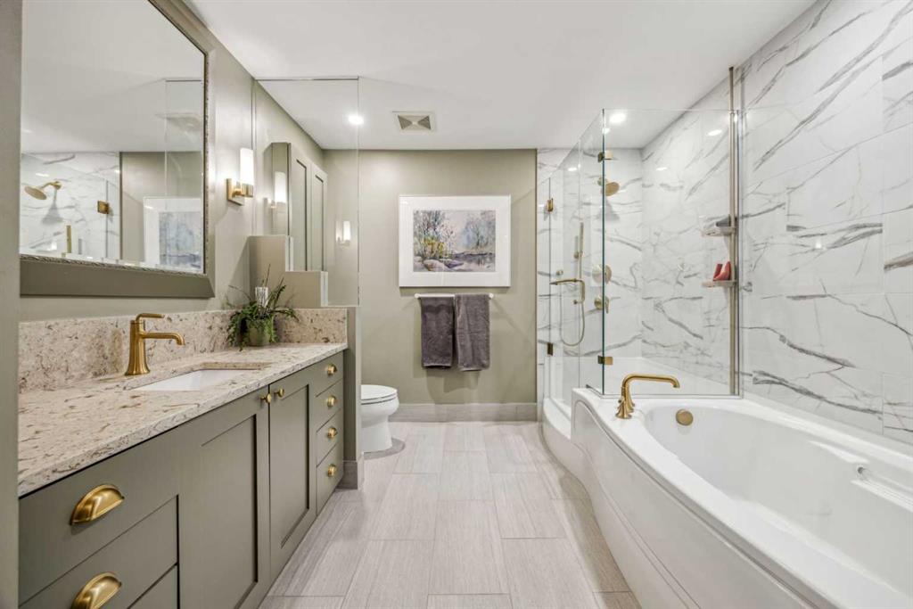 Click brochure link for more details. Looking for a lock-and-leave lifestyle in the heart of the Beltline’s 17th Avenue with awe-inspiring, uninterrupted vistas of the Rockies and Upper Mount Royal? You have found your next home at The Montana, an elegant and sophisticated condo building located near shops, cafés, restaurants, professional services, and transit. From this spacious unit’s wide windows and 2 south-facing balconies, you’ll enjoy ample natural light, sunrises and sunsets. Significantly renovated in 2023-2024, this luxurious open-concept suite offers 2 bedrooms and 2 baths. Upgrades include engineered hardwood throughout and tile flooring in the bathrooms, as well as flush-mount lighting and dimmer switches. You’ll enjoy cooking in an updated kitchen featuring a 9-foot island, custom-painted Shaker cabinets, CAMBRIA® Quartz counters/slab backsplash, stainless appliances, recessed LED lighting, pantry, beverage fridge, and wine bottle rack. In the living room, relax in front of the DIMPLEX® REVILLUSION® electric fireplace, clad in floor-to-ceiling Quartz. Your cozy primary bedroom comes with HUNTER DOUGLAS® blackout roller blinds, a custom-made valance and recessed lighting. Need an ensuite with upgraded vanity Quartz countertop, brushed gold plumbing fixtures, brass sconce lighting, and a tub and shower wrapped in marble-like porcelain tile? You’ll find it here. A walk-through closet in the primary bedroom offers ample hanging space along with a linen closet and multiple cubbies. Located on the other side of the unit, a second bedroom/office/guest room with blackout roller blinds and custom valance, matched with a renovated main bath, give you more living space and functionality. On laundry day, you’ll appreciate the SAMSUNG® side-by-side, full-size washer and dryer plus a storage cabinet. Feel like barbequing? A gas outlet on the balcony provides opportunities for outdoor cooking. Prefer to stay cool? Central air conditioning helps you beat the heat. A conveniently located underground parking space is included, along with an assigned locker. Need to work out? A ground-floor gym provides residents with opportunities to get fit. Looking for more? Guest parking, 24/7 security with on-site concierge service, and a bike storage room complete the package. The Montana has easy access to Shoppers Drug Mart, Canadian Tire, Save-On Foods, Best Buy, coffee shops, restaurants, green space, professional services, a gas station, a bank, transit, fashion retailers, and more. Condo fees cover caretaker, common area maintenance, heat, insurance, parking, amenities, professional management, reserve fund contributions, security personnel, sewer, snow removal, and water. Information on inclusions, exclusions, renovations, floor plan, and measurements available upon request. Don’t miss an opportunity to elevate your lifestyle with memorably upgraded design and functionality.