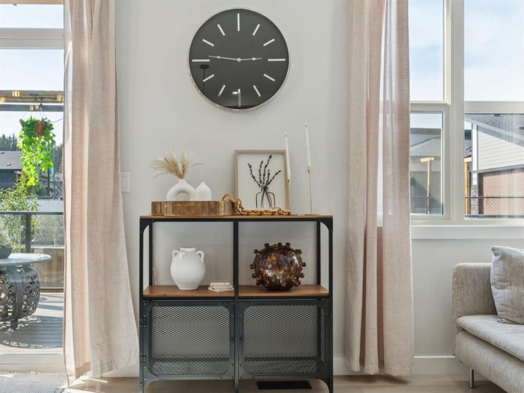The fully developed basement is an entertainer’s paradise with 9-ft ceilings, a wet bar with bar fridge, a spacious theatre room, with unique beams and generous storage. Upstairs, a bright bonus room with unique feature walls offers flexible space for family living, 3 bedrooms inclusive of the master bedroom.
