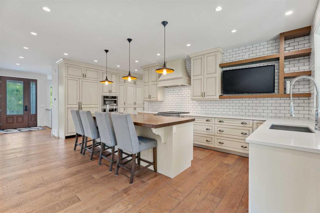 The main-floor primary retreat is a sanctuary of comfort, with vaulted ceilings, a barn wood feature wall, and a spa-inspired ensuite complete with in-floor heating, freestanding soaking tub, walk-in glass shower, and a custom-fitted walk-in closet. A dedicated office, laundry room, and mudroom complete the main level with thoughtful functionality. Upstairs, above the garage, is a versatile bonus room with built-in bar and games area provides an inviting space for relaxation or entertaining, while two additional bedrooms with window seats share a beautifully appointed bathroom. The fully developed lower level offers a billiards area, full bar, spacious recreation room, and two more bedrooms—ideal for hosting guests.