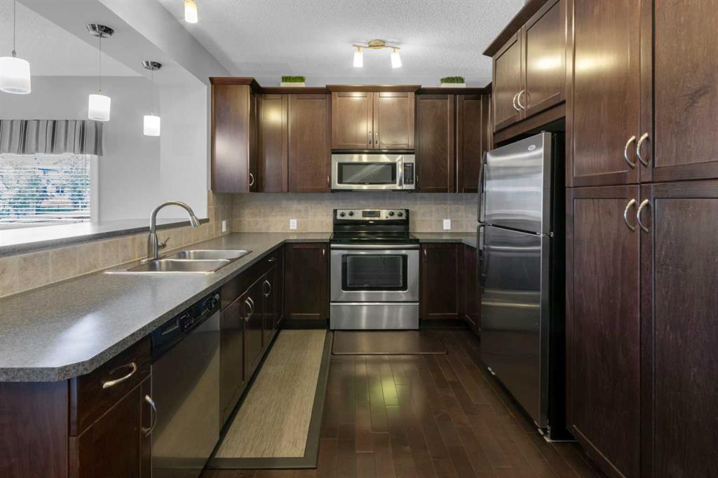 HOME SWEET HOME! Welcome to this stunning, executive 2 storey home situated on a quiet, family friendly street BACKING ON TO A GREEN SPACE in the sought-after NW community of Evanston! Brand new roof! This wonderfully maintained, move-in ready home offers 4 bedrooms, 3.5 bathrooms, a contemporary open concept floor plan offering 2,630 SQFT developed SQFT throughout, charming curb appeal and a double attached garage. Heading inside this sophisticated home you will fall in love with the elegant décor and gleaming hardwood flooring. The main floor offers an extremely spacious living room that’s flooded in natural sunlight, a formal dining area, 2 piece vanity bathroom and an outstanding gourmet chef’s kitchen featuring a peninsula island with a raised eating bar, full appliance package and a ton of counter and cabinet space. Upstairs you will find a large, bright bonus/ family room with vaulted ceilings, laundry room, 2 generous sized bedrooms, a gorgeous 4 piece bathroom and the star of the floor, the dreamy master retreat complete with a massive walk-in closet and a spa-like 5 piece ensuite bathroom with double vanity sinks, an oversized shower and a cozy soaker tub. The fully finished basement offers a 4th bedroom, spacious living room/recreation room that’s perfect for a growing family, another fantastic 4 piece bathroom and a utility room with ample storage space. Outside, boasts a double attached garage with additional driveway parking and the beautifully manicured, fenced backyard with a large deck that’s perfect for entertaining. This prime location is close to all major amenities including schools, public transportation, parks, many different shopping options, numerous pathways and quick access to Stony Trail and other major roadways! This GEM is a MUST VIEW, book your private showing today!
