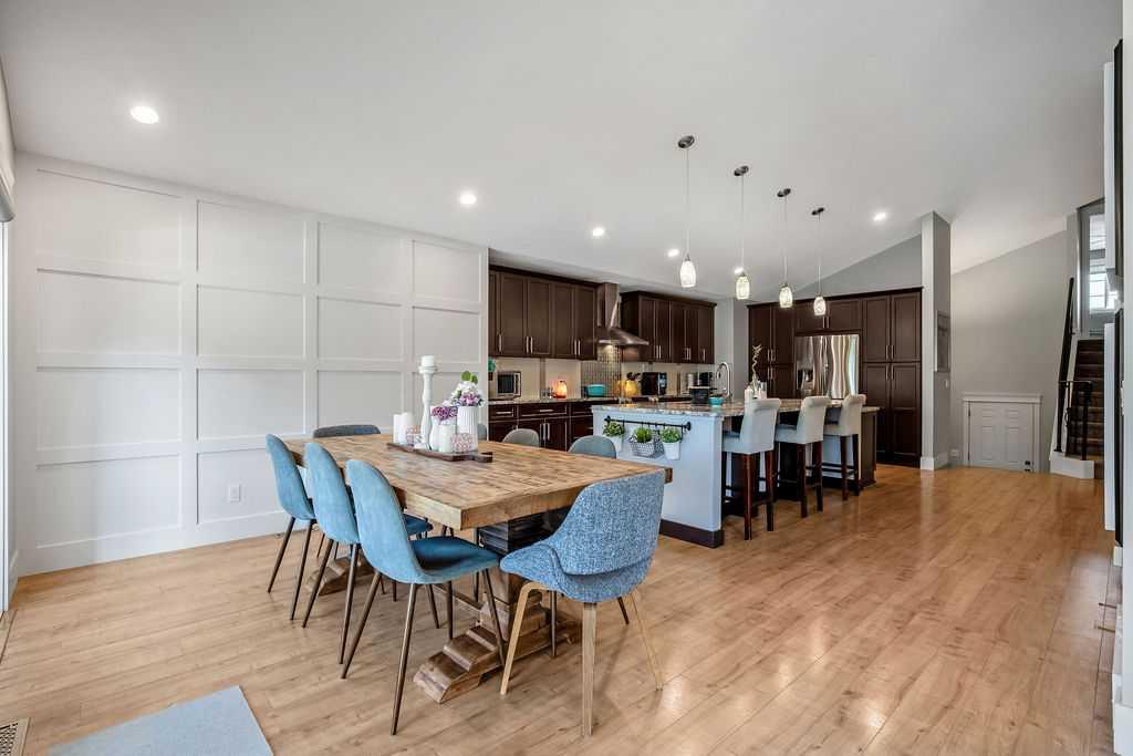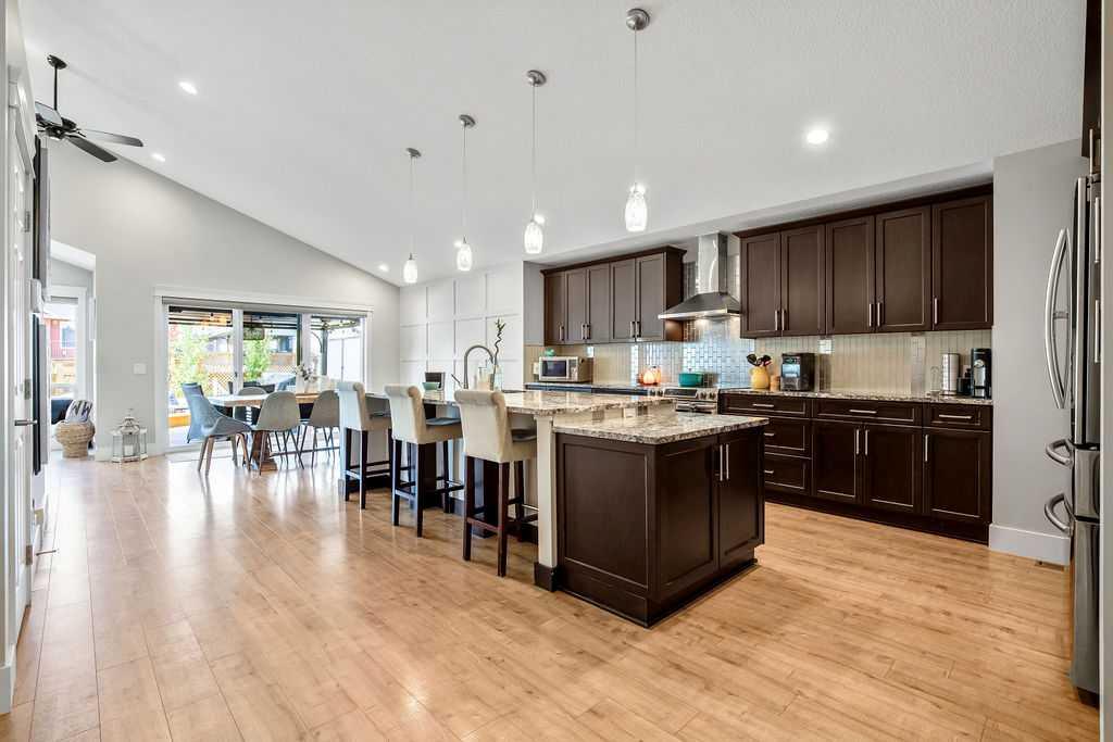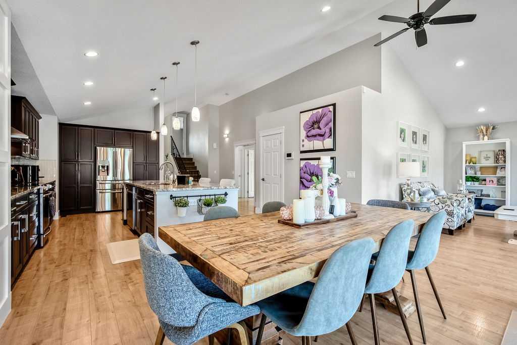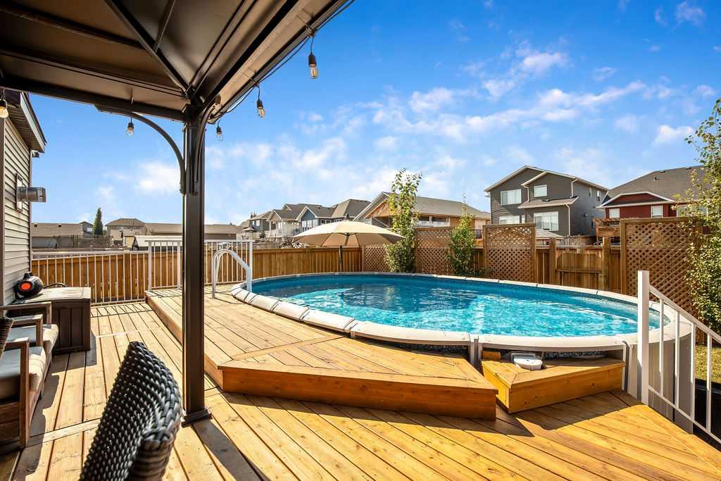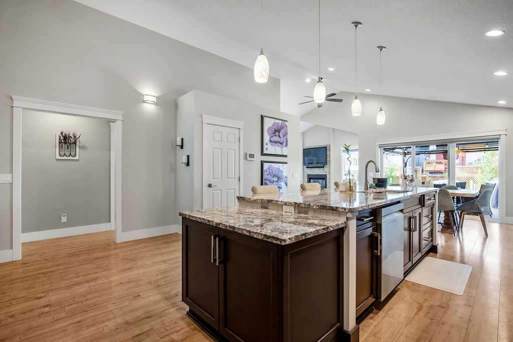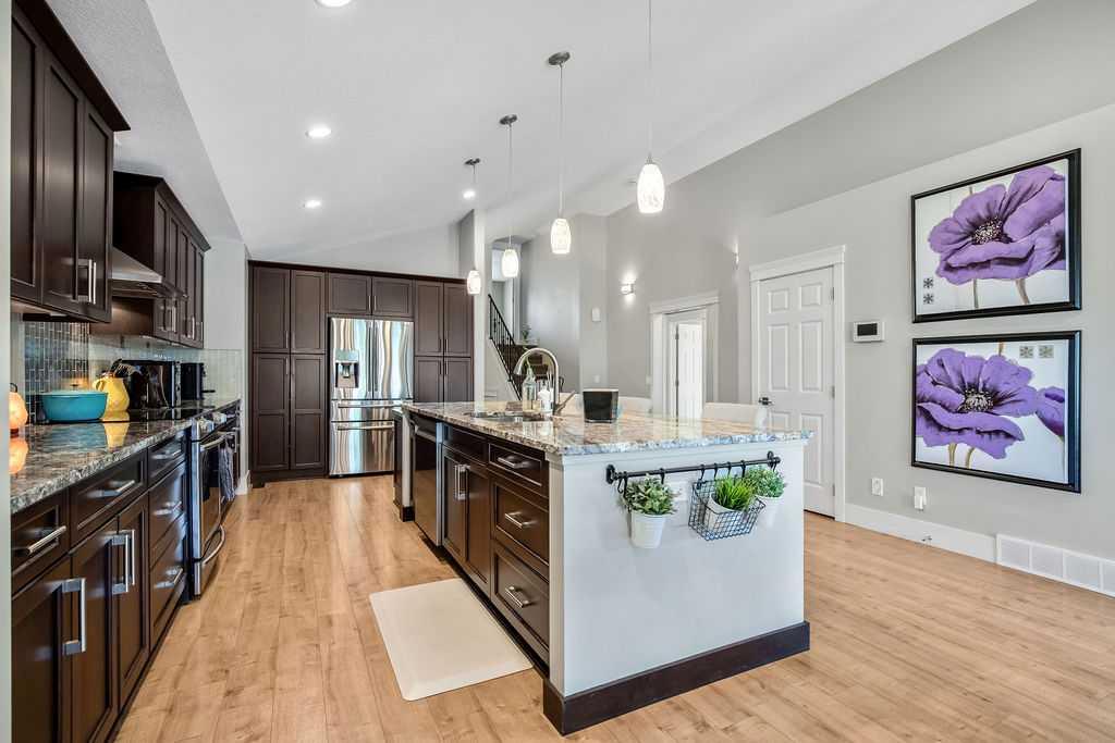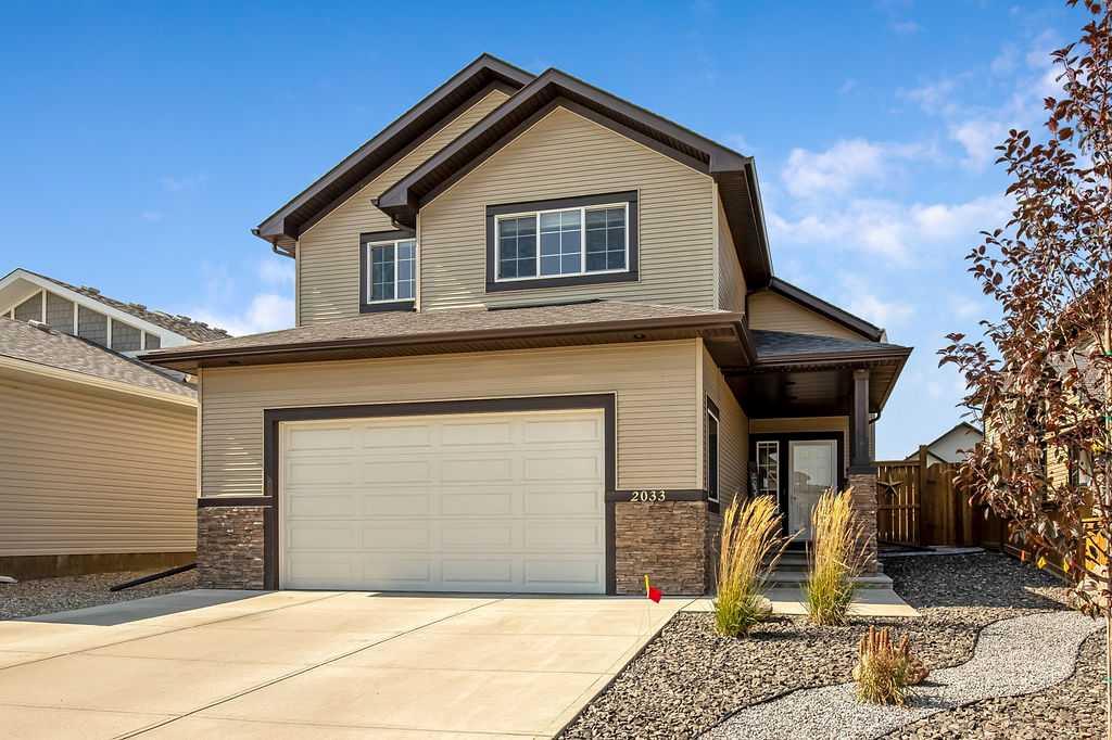 Welcome to 2033 High Country Rise NW – a beautifully designed executive 6-bedroom home offering a unique “master up” floor plan and an incredible lifestyle inside and out. The main floor is open and bright, featuring vaulted ceilings and gorgeous hardwood laminate plank flooring throughout. The chef-inspired kitchen boasts a massive island, granite countertops, wall pantry and abundant cabinetry; flowing seamlessly into the dining area with its striking board-and-batten feature wall. The inviting living room showcases a cozy gas fireplace and expansive west-facing windows leading to the raised deck and above-ground pool. The main floor also includes two generous bedrooms, a 3-piece bath, and a convenient laundry room with sink. Upstairs, the private primary suite offers a retreat of its own, with a huge bedroom, east-facing windows for morning light and a luxurious 5-piece ensuite. The fully finished lower level provides a large family room with fireplace, three additional bright bedrooms and excellent storage. Step outside to a show-stopping yard designed for both relaxation and entertainment. Outdoors, this home truly shines. The custom wood decking surrounding the pool, along with a fully fenced and landscaped yard, creates the perfect private oasis. The hardscaped front yard enhances the curb appeal, while the double garage adds function. Located close to schools, pathways, parks, golf and easy highway access; this home blends comfort, style, and convenience. A must-see for families seeking both space and lifestyle!