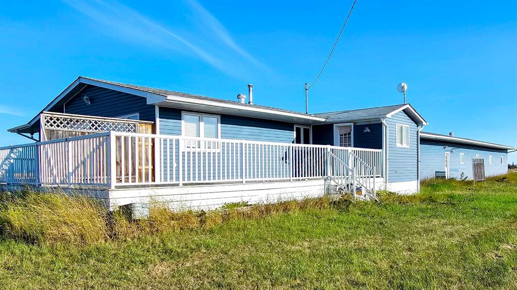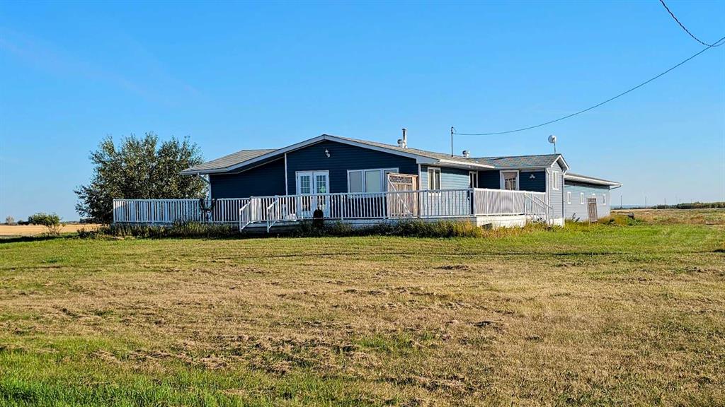 Best of both worlds to combine home and work life! Quarter section (160 acres) with 150 acres in farmland and the balance a residence area with two homes. Four-car-garage attached to fully developed home plus a second residence: an updated mobile home! 40\' X 100\' Quonset for storage plus a heated 40\' X 42\' workshop for projects. Various outbuildings. Crops of canola, hay, alfalfa in recent years. Large ranch style main house with attached four car in-floor heated garage fronted with 30\' X 80\' concrete parking pad, connected by spacious mud room. Wrap around deck with maintenance free railings on west, north, east sides of house. Dugout draws water to the home and in the garage is a cistern if you prefer to haul in water. Recently fully renovated basement effectively makes the approximately 2,600 square foot home feel new again. Enter the mud room and step left to that long garage or hang a right into the home, via steps or ramp. Main floor is modern and just requires a few touch ups. An addition adds a second large dining space to the main floor, or option to modify the large layout for a variety of uses. Two bedrooms plus a utility room which could be third bedroom. Downstairs, two bedrooms, office, small den and three piece bath. Also, huge games and media spaces. Mobile home has been renovated with a large addition and just needs some minor work. This is an estate sale so please accept the property, inside and out, as is where is. Buyer to check if GST applies. More details of house at MLS A2257215.
