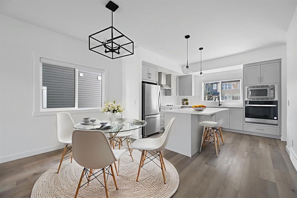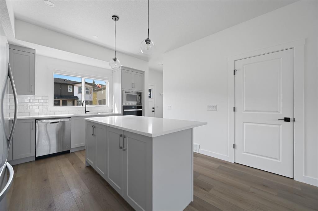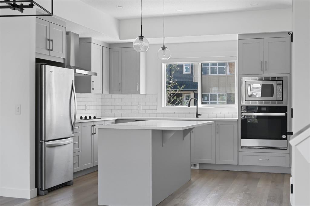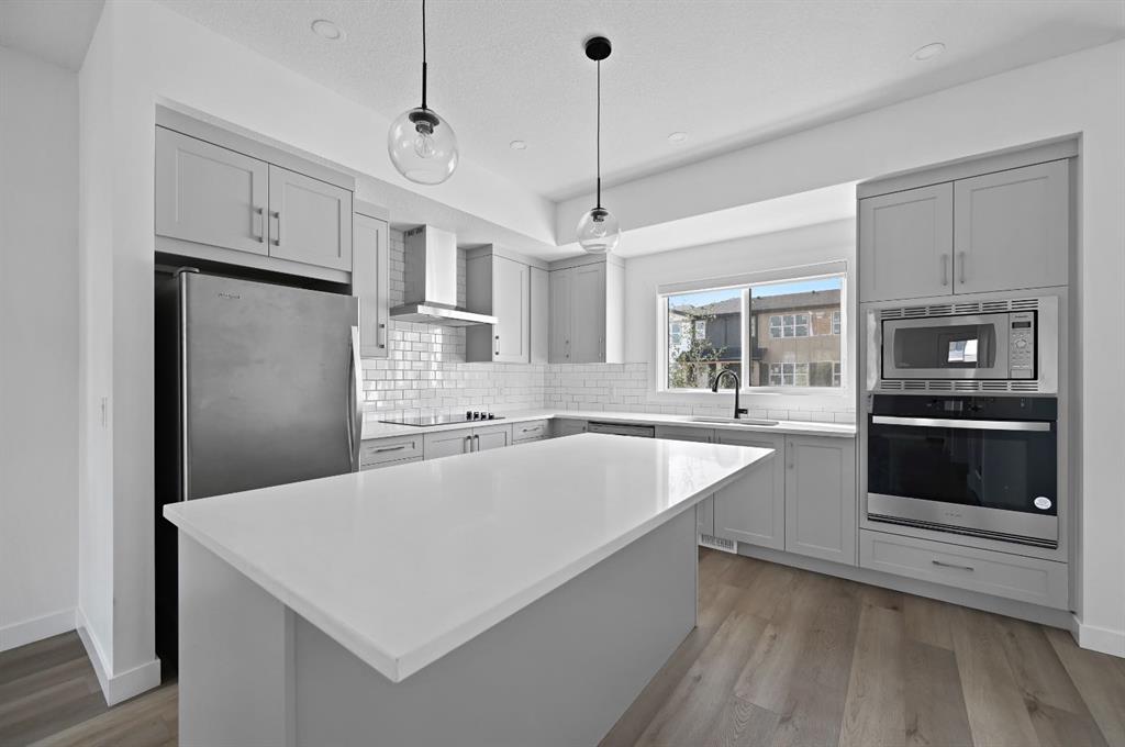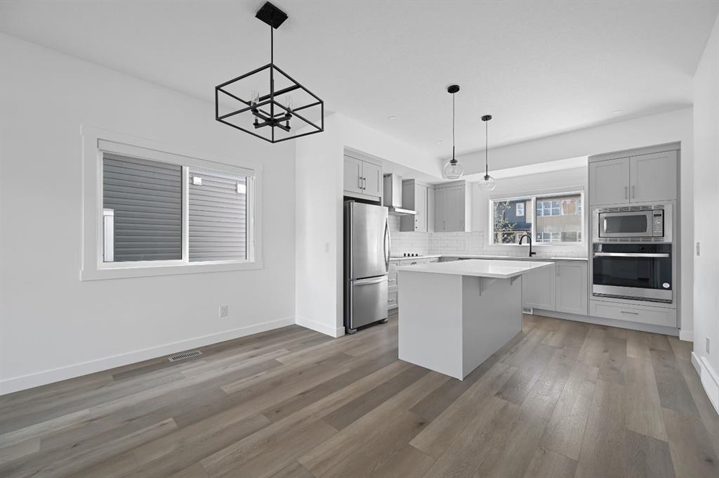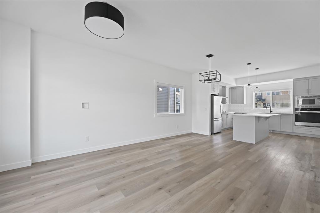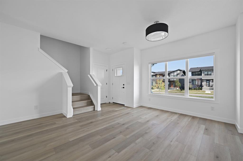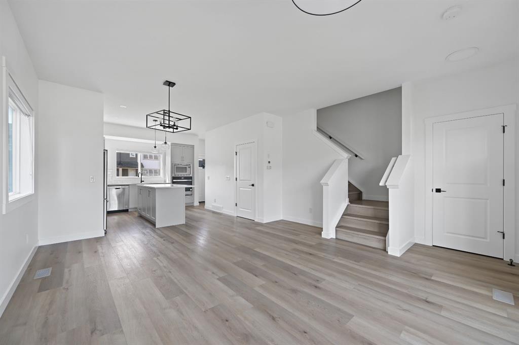 Step into this fully upgraded, move-in ready townhome in Cochrane’s sought-after community of Riversong! Bright, functional living spaces and thoughtful design make this the perfect place to call home. The open-concept main floor offers a welcoming living room, a dedicated dining area, and a spacious kitchen where style meets practicality. The kitchen is a chef’s dream, complete with a full appliance package, loads of cupboard space, and a large island that doubles as prep space and casual dining. Upgrades like vinyl plank flooring and premium quartz countertops add style and durability throughout. Upstairs, the primary suite is a serene retreat with a walk-in closet and a private four-piece ensuite. Two additional bedrooms share another full bathroom, each with excellent closet space. Convenience continues with an upper-level laundry room with a stacked washer and dryer, and central air conditioning keeps the home comfortable year-round. The undeveloped basement is a blank canvas, plumbing is roughed in and ready for your personal touch, add bedrooms, a rec room, home gym, or office. Two designated parking stalls are included, a rare find! Explore the nearby 100-acre nature reserve with scenic pathways, enjoy proximity to Bow Valley High School and Fireside School, and stay active at Spray Lake Sawmill Family Sports Centre. Downtown Cochrane’s shops and restaurants are minutes away, and Highway 1A offers quick access to Calgary and the mountains. Turnkey living with all the extras in the heart of Cochrane!