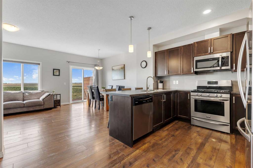 This is the ONE you’ve been waiting for in the highly sought-after community of HILLCREST! This beautifully maintained 3 BED, 3.5 BATH home offers nearly 2,000 SQ FT OF DEVELOPED LIVING SPACE and sits on a RARE, OVERSIZED LOT! Step inside to a thoughtfully designed OPEN CONCEPT MAIN FLOOR, featuring a spacious kitchen with a BREAKFAST BAR, STAINLESS STEEL APPLIANCES including a GAS STOVE, and a PANTRY—perfect for everyday living and entertaining. The kitchen flows seamlessly into the dining area and cozy living room, where you’ll enjoy an UNOBSTRUCTED VIEW and direct access to a PRIVATE BALCONY—with NO NEIGHBOURS BEHIND! A convenient HALF BATH completes the main level. Upstairs, the PRIMARY SUITE is your own private retreat, complete with a 4-PIECE ENSUITE and a WALK-IN CLOSET. You\'ll also find TWO GENEROUSLY SIZED BEDROOMS, UPSTAIRS LAUNDRY, and another FULL 4-PIECE BATHROOM. The WALK-OUT BASEMENT is fully finished and offers a WET BAR, is wired for SURROUND SOUND, and includes a 3-PIECE BATHROOM plus plenty of STORAGE SPACE. Outside, enjoy the incredible OVERSIZED YARD—perfect for kids, pets, or hosting summer BBQs—with a SECOND LARGE DECK, PLENTY OF PRIVACY, and a STORAGE SHED for your outdoor gear. You’ll love the convenience of the ATTACHED SINGLE GARAGE, and the unbeatable location—close to schools, walking paths, a local brewery, shopping, and major routes for easy commuting. Don’t miss out on this one—it’s a must-see!