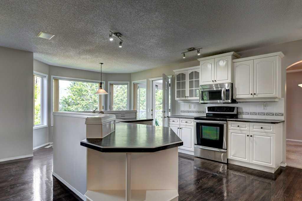 Warm & Welcoming 4+ Bedroom Family Home - Discover the perfect blend of comfort, space, and charm in this beautifully maintained home, ideally situated in a fantastic location close to shopping, groceries, and excellent schools. Set in a mature neighborhood with tree-lined streets, mountain views and Fish Creek Park, this home offers room for everyone and every activity. Upstairs, you’ll find four generous bedrooms, including a spacious primary suite with ensuite and mountain views between the trees. In fact, all the bedroom windows are triple pane to provide the quietest most temperature constant environment upstairs. The main level also has triple pane windows on the largest widows, both family room and kitchen nook. This large central kitchen is the heart of the home, connecting seamlessly to the inviting family room with its cozy gas fireplace, large breakfast nook and a delightful sun room balcony to soak in the views. The lower level boasts a huge recreation room—also with a gas fireplace—that opens to a covered patio, perfect for year-round enjoyment. With lots of storage, and 2 flexible area/rooms that could become lower level bedrooms or offices or craft rooms, or you could have up to six bedrooms in total. Additional highlights include an enclosed private hot tub for all-weather relaxation, built-in vacuum, two hot water tanks (2025, 2022) so you\'ll never run out of hot water, 220V in the garage, and thoughtful updates throughout. With concrete stairs down the side of the home, there is easy access to the lower level. With a second dishwasher and bar fridge, the lower level is a perfect spot for entertaining! This is more than just a house—it’s the space where memories are made. Call your favorite realtor today!