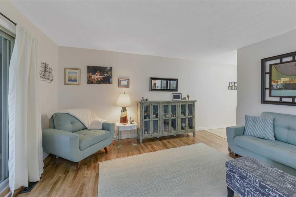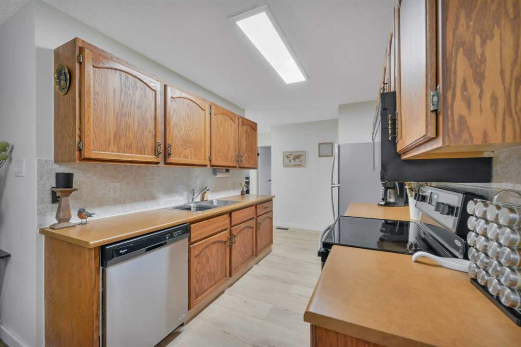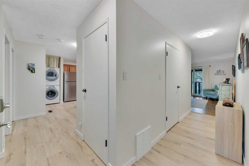 Affordable condo living in Bell Manor. Make the move to Bell Manor and find everything you’re looking for — at a price that works! This welcoming condominium community has no age restrictions, making it the ideal first home, downsizing option, or smart addition to your investment portfolio. Step upstairs to this second-level unit and be greeted by new, low-maintenance vinyl plank flooring. The spacious foyer leads to two comfortable bedrooms, including a primary with a private balcony — perfect for enjoying fresh air and morning coffee. A full bath with plenty of counter space and storage easily accommodates family or roommates. The bright, open living room features laminate floors and patio doors to a second covered balcony, adding even more outdoor space. The well-appointed kitchen offers abundant cabinetry, ample counterspace, and modern stainless-steel appliances that any home cook will love, while the adjacent dining area easily fits a full-size table for entertaining. Additional features include central vac, in-suite laundry with stackable washer/dryer, and an assigned parking stall with plug-ins for chilly Alberta winters. Residents also enjoy access to a community Clubhouse for private parties and gatherings. Affordable condo fees cover common-area maintenance — freeing you from snow shoveling and lawn care — and professional management by Sunreal Property Management offers peace of mind for owners and investors alike. Perfectly located in the beloved Bower neighbourhood, just a block from Bower Mall, transit, grocery stores, restaurants, banks, and more — everything you need is right at your doorstep.