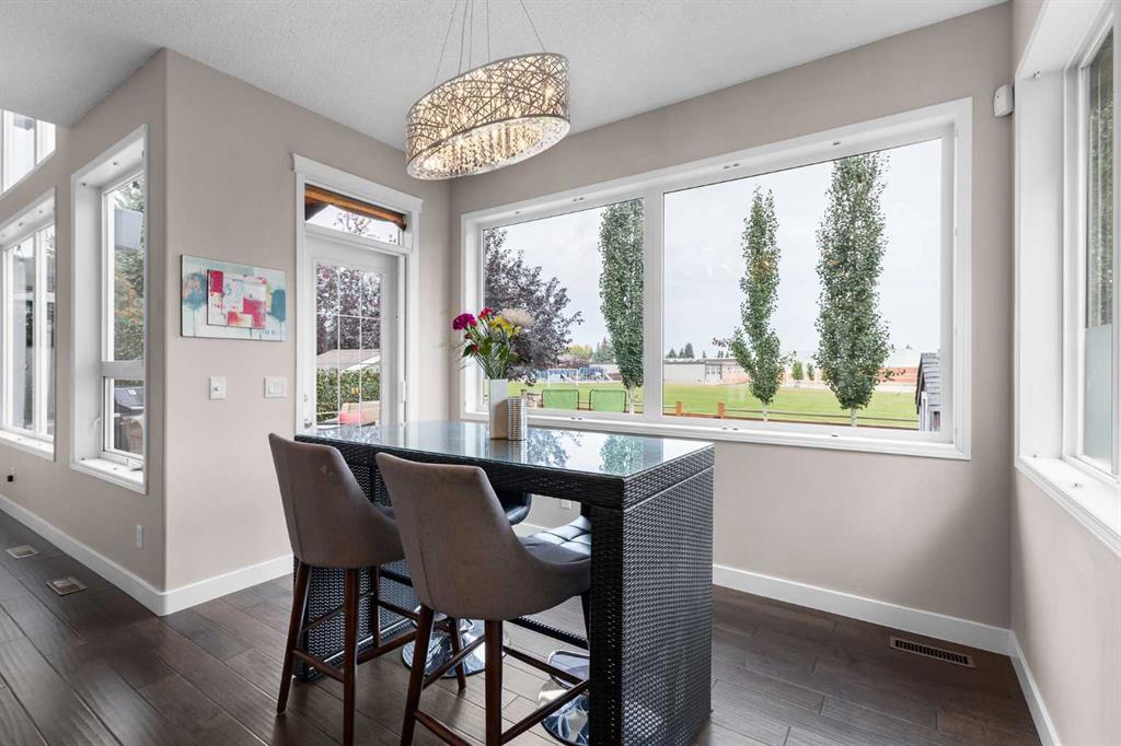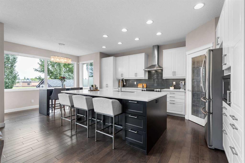 Located in the desirable lake community of Chaparral, this two-storey home offers over 3,350 sq. ft. of developed living space with five bedrooms and three and a half bathrooms. Perfectly positioned backing onto a school park and playground, it combines family-friendly convenience with lake access. The property also includes a double attached garage and thoughtful updates throughout. The welcoming front porch leads into a spacious entryway with 9’ ceilings and rich hardwood flooring. The main floor is designed with both function and flow in mind. At the front of the home, an office with French doors provides a quiet space for work or study. At the back, the open concept kitchen, living, and dining areas are filled with natural light from floor-to-ceiling windows that frame views of the park. The custom-designed kitchen is equipped with sleek white cabinetry, a two-tone island with seating, Corian countertops, stainless steel appliances, and a walk-in pantry. It seamlessly connects to the dining area and living room, where a cozy gas fireplace and two-storey ceiling height create an inviting atmosphere. A two-piece powder room and a mudroom with laundry complete the main level. Upstairs, the primary retreat offers a private escape. This generous suite features a walk-in closet and a five-piece ensuite with dual sinks, a soaker tub, and a standalone shower. Two additional bedrooms and a four-piece bathroom round out the upper level. The fully developed basement adds valuable living space with a large recreation room, two more bedrooms, a flex room ideal for a workout space or hobby area, and plenty of storage. The backyard is designed for both relaxation and play, featuring a large composite deck perfect for BBQs, a grass area, and a storage shed. Direct access to the park and playground extends the outdoor space for year-round enjoyment. Additional features include air conditioning for hot summer nights and recent upgrades such as the roof (2021), furnace (2019), and one hot water tank (2025). Living in Lake Chaparral provides a lifestyle unlike any other. Residents enjoy access to private lake amenities including beach areas, basketball, volleyball and tennis/pickleball courts, boat rentals, BBQ pits, picnic areas, playgrounds, horseshoe pits, swimming, fishing, skating, and tobogganing. The lake entrance is just a 10-minute walk from the home. Families will appreciate the convenience of backing onto Saint Sebastian Elementary and being only five minutes from Chaparral School. Outdoor enthusiasts can explore the extensive pathways along Chaparral Ridge and Valley, the Bow River, and Fish Creek Provincial Park. Golfers are only minutes from Blue Devil and McKenzie Meadows Golf Clubs. For commuting and daily needs, the home offers easy access to Stoney Trail, Deerfoot Trail, and Macleod Trail, while shopping and services are close by at the Township Shopping Centre, Shawnessy shops, and a wide selection of restaurants. Check out the floor plans and 3D tour!