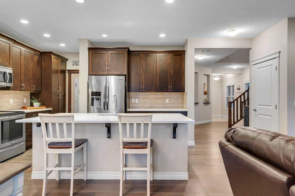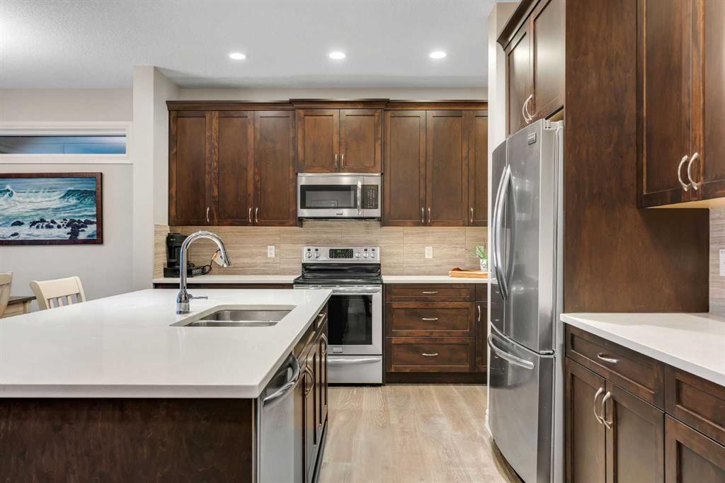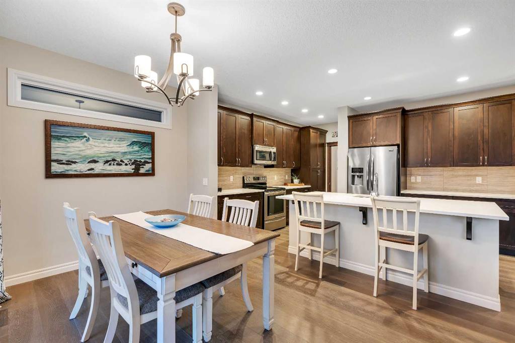 Step into this stunning 4-bedroom Trico built walkout home, offering over 3,300 sq ft of developed living space, and backing directly onto a peaceful pathway with direct access to the Mahogany wetlands—providing rare privacy and scenic views right in your own backyard. The fully fenced yard and elevated balcony make it easy to enjoy your morning coffee or take in breathtaking evening sunsets while overlooking one of the most desirable natural landscapes in the city. Inside, a grand front entry leads into a bright, open-concept main floor where expansive windows flood the kitchen, dining, and living areas with natural light. A central fireplace serves as a cozy focal point of the living room, while the kitchen features a quartz countertop island, generous counter space, and direct access to the upper balcony for effortless indoor-outdoor living. A smart walkaround layout connects seamlessly to the mudroom, attached garage, and convenient half-bath. Throughout the main floor, engineered hardwood flooring enhances the sense of flow and style. Upstairs, you\'ll find a spacious bonus room ideal for a media area or playroom, along with two additional bedrooms that share a full bath. The standout is the luxurious primary retreat, complete with high tray ceilings, a spa-inspired ensuite featuring a soaker tub, walk-in shower, double vanity, and a large walk-in closet. The fully finished walkout basement has been newly developed with modern style ~ which offers even more living space, including another generous great room with direct access to the backyard and the serene private pathway beyond which takes you through the various nature setting wetlands. You will also find a spacious additional bedroom with outdoor access, a 3-piece bathroom, and a built-in bar area—perfect for entertaining. For further comfort and convenience, the home has dual air-conditioning, perfect for year-round comfort! Located in the vibrant lake community of Mahogany, you can enjoy exclusive access to beaches, swimming, paddleboarding, and year-round recreation with skating as a winter seasonal hi light. With top-rated schools, shops, restaurants, and a lively community center nearby, Mahogany offers the perfect blend of nature, luxury, and convenience.