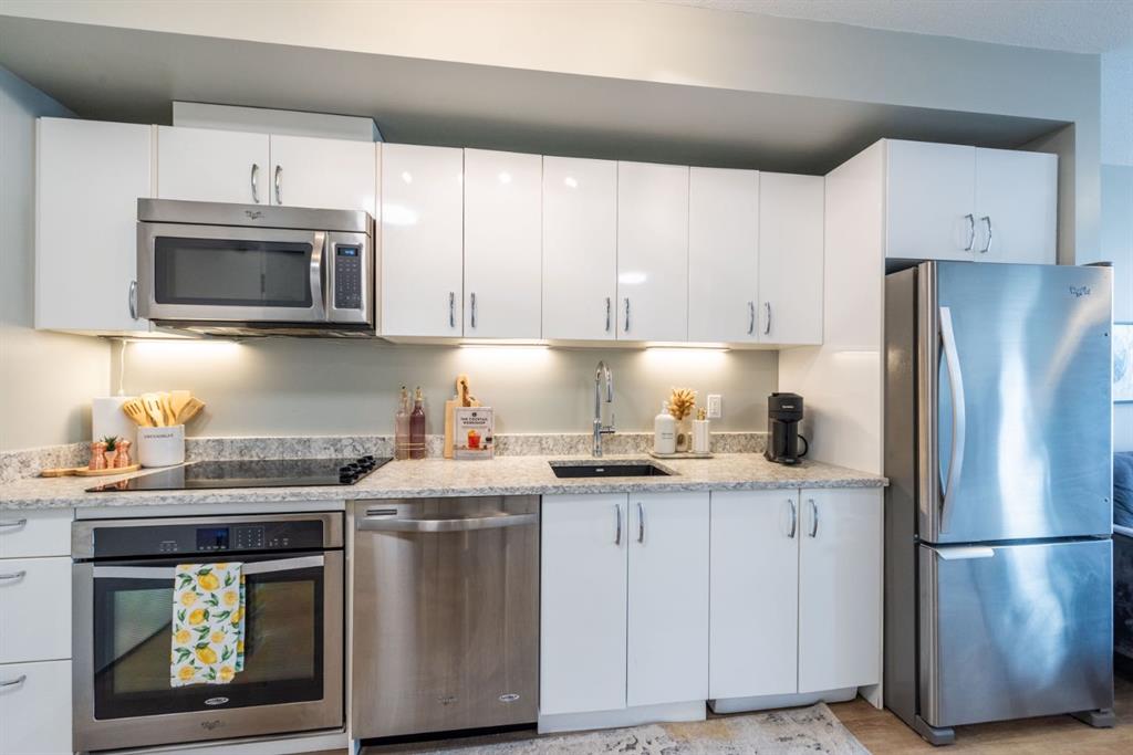 Stylish 2-Bedroom Corner Unit in Calgary’s East Village Welcome to urban living at its best! This bright and modern 2-bedroom, 1-bathroom corner unit is perfectly located in the heart of East Village, one of Calgary’s most vibrant and walkable communities. Found in the innovative N3 building at 450 8 Avenue SE, this home offers a smart layout, plenty of natural light from floor-to-ceiling windows, and sweeping views of the city skyline. N3 blends sleek style with everyday functionality. The open-concept kitchen is a standout with quartz countertops and modern appliances—ideal whether you’re cooking up a storm or grabbing a quick bite. You’ll also have your own storage locker for those extras you don’t need every day. The building is packed with amenities to make city living easy and enjoyable: a fully equipped two-level gym, a rooftop patio with BBQs and panoramic views, cozy outdoor lounges, and even main-floor retail. It’s the kind of place where you’ll want to invite friends over—or just relax and take in the city from up high. Step outside and you’re literally minutes from it all. Walk to City Hall Station in 2 minutes, or stroll a block to the iconic Central Library. You’re also just steps from Studio Bell, the National Music Centre, Bow Valley College, parks, the RiverWalk, and some of Calgary’s best cafes and shops. Whether you’re a professional, student, or someone who simply loves being in the middle of it all, this East Village home puts you at the centre of Calgary’s energy and charm.