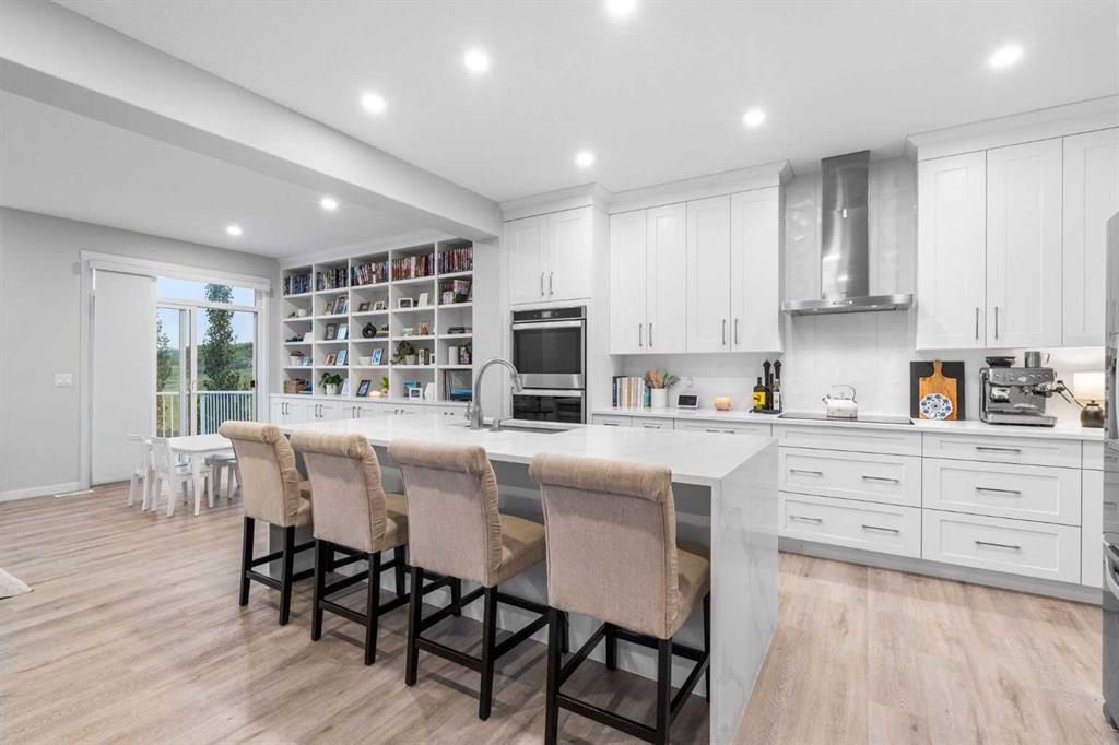 Step inside to discover an open main floor designed for both function and style. The gourmet kitchen features a waterfall island, double ovens, and oversized appliances, while the built-in bookshelves and mudroom with custom features add thoughtful touches.