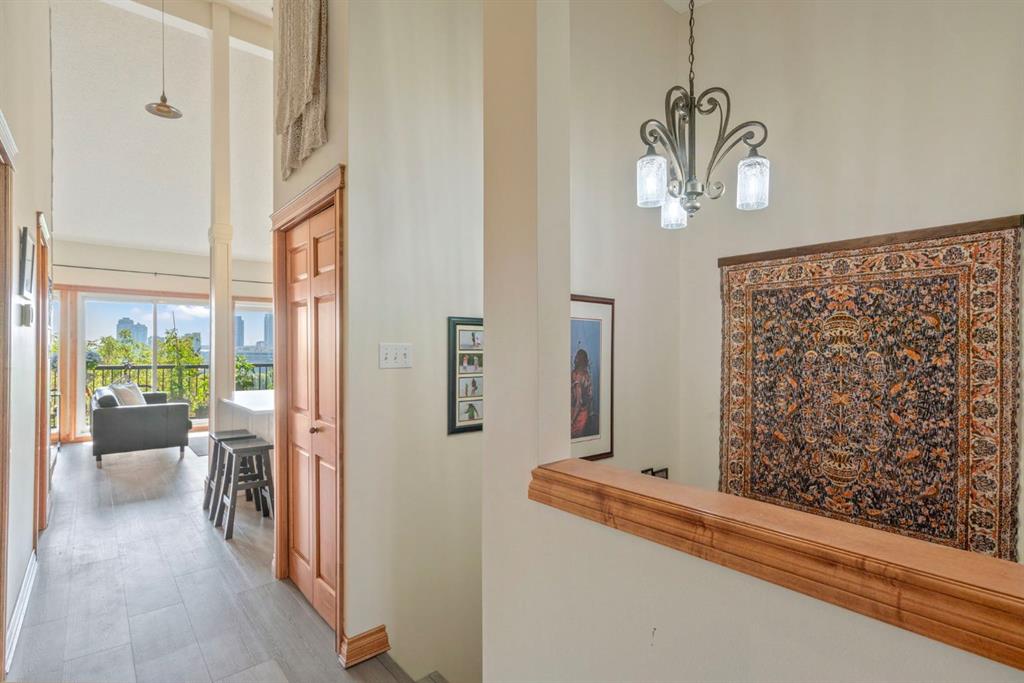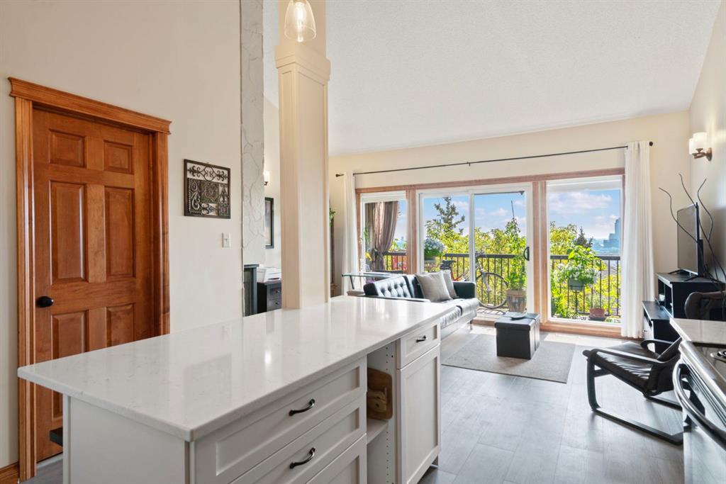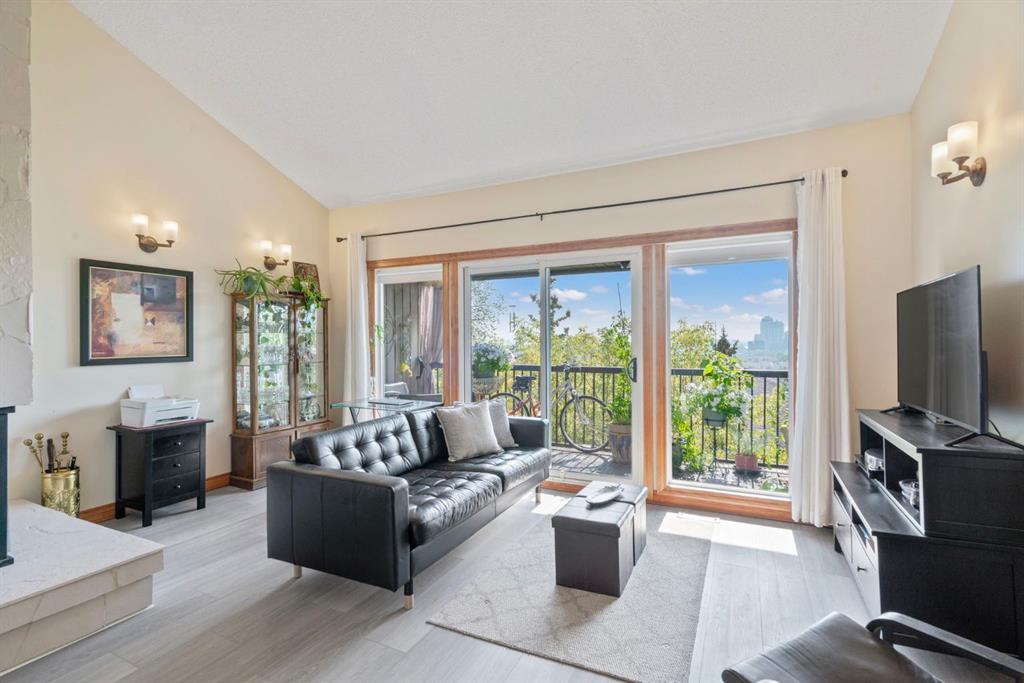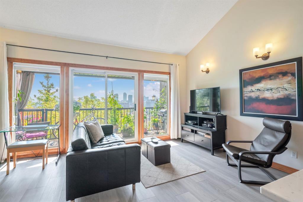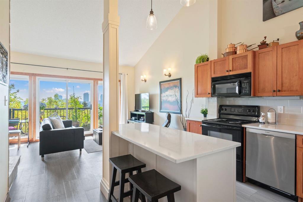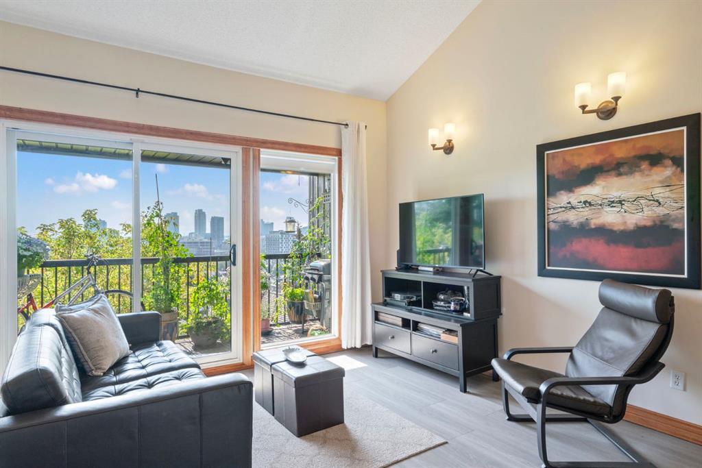 Welcome to this charming 2-bedroom townhouse in the heart of Renfrew, tucked away on a quiet cul-de-sac with direct stair access into Bridgeland. This thoughtfully designed home combines character with modern updates, offering comfort, style, and stunning city views. Inside, you’ll find soaring 17-foot vaulted ceilings, upgraded vinyl plank flooring, and rich solid maple doors and trim that create a warm and inviting atmosphere. The bright kitchen features granite countertops, plenty of cabinetry, and an eat-up island that flows into the open living area. From here, you’ll enjoy a cozy wood-burning fireplace with a gas line lighter, the perfect backdrop for relaxing evenings. Expansive upgraded windows and patio doors frame the private balcony, where you can take in the incredible views of downtown Calgary surrounded by greenery. The spacious primary bedroom, well-appointed second bedroom, and an upgraded bathroom with dual glass vessel sinks provide both comfort and function. Added convenience comes with a dedicated laundry room and ample storage throughout. This home has been thoughtfully maintained with a new high-efficiency furnace (2025) and new hot water tank (2025), giving peace of mind for years to come. Located in the sought-after community of Renfrew, you’re just steps from parks, pathways, shops, and dining, with quick access to downtown. Whether you’re a first-time buyer, downsizer, or investor, this is an ideal opportunity to own a move-in ready home in one of Calgary’s most desirable inner-city neighbourhoods.