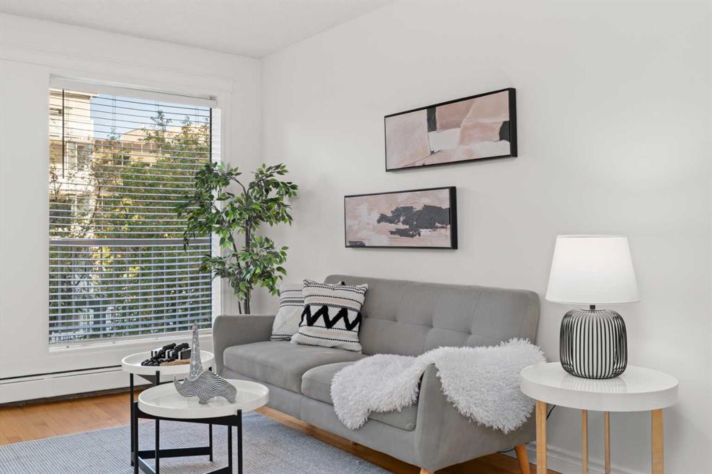 Discover this immaculate one-bedroom condo, perfectly located in the vibrant core of Calgary’s most bustling urban neighbourhood. Just steps from the city’s best cafes, restaurants, shops, and nightlife.Inside, large windows fill the space with natural light, while the Phantom Screens open onto a sprawling 23-foot balcony—perfect for a container garden, BBQ, or patio set where you can unwind in the sun or enjoy dinner outdoors. Even in the hustle and bustle of this central location, this condo feels remarkably peaceful thanks to its tree-lined street setting...truly the most ideal location in the Beltline. This condo feels larger than it measures, with every square inch perfectly designed for comfort. The open concept of the main area blends the kitchen with eating bar into the living/dining area, while the bedroom feels private and is adjacent the full bathroom. Laundry is easy, with ensuite washer/dryer. Adding to its urban appeal, both sides of the building have been transformed with vibrant BUMP murals created by top local and international artists, enhancing the building’s character and reflect the creative spirit of the neighbourhood. This concrete building is quiet, exceptionally well managed, and has recently seen major upgrades including a new roof and elevator. A strong sense of community shines through—long-term residents greet each other in the hallways, while the immaculately maintained front garden rivals some of the city’s parks. Secure bike storage, as well as convenient compost, recycling services, add to the ease of everyday living. Park off street in your assigned stall. Commuting and errands are effortless with the 15th Avenue cycle track at your doorstep, quick access to multiple grocery stores (Save On Foods, Safeway, Co-Op, Community Natural Foods), pharmacies, and a wide array of retail options including Canadian Tire, The Bike Shop, and Atmosphere. You’ll also be steps from Tomkins Park and just minutes from the Downtown Core, Kensington, Mission, Prince’s Island Park, and the Elbow River pathways. Excellent access to bus routes, LRT, and cycle networks means you can get anywhere with ease. Pet friendly ( with board approval)