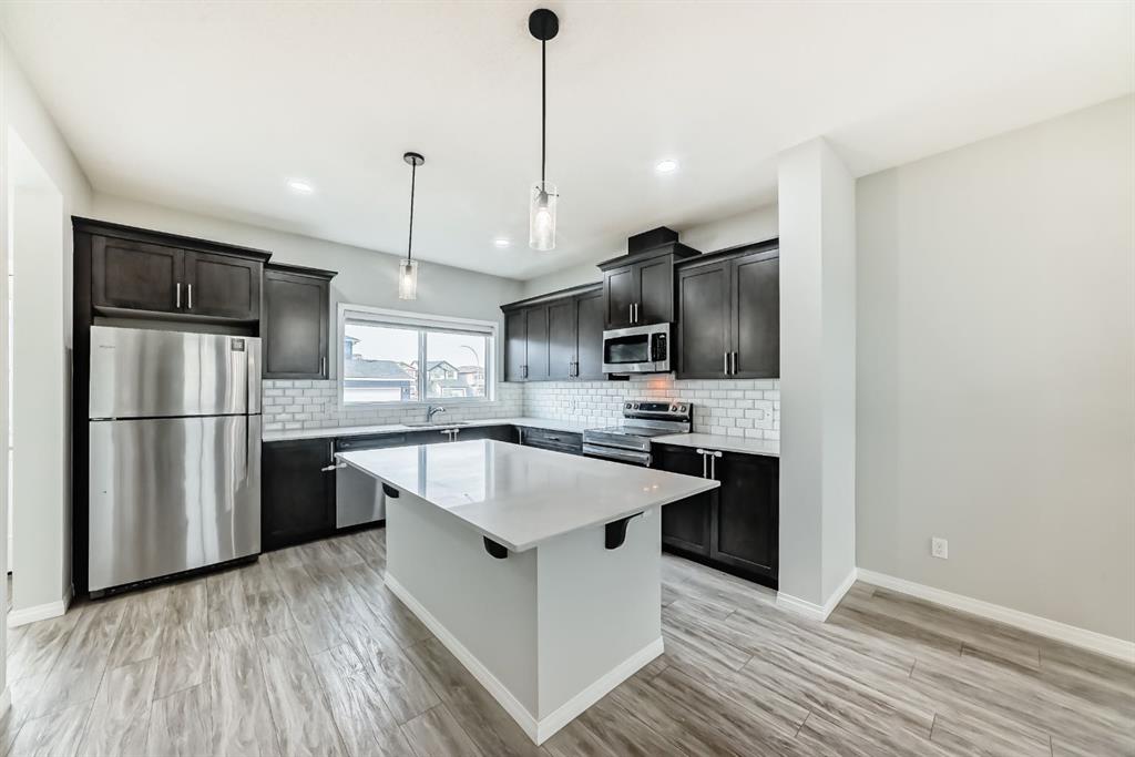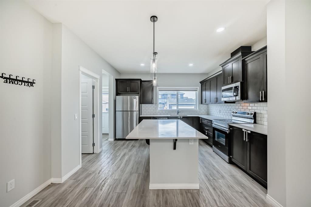 chef-inspired kitchen with a stunning center island, stainless steel appliances, and a large pantry. Beautiful cabinetry with clean, modern look. Stainless steel appliances for a stylish touch. Large pantry for all your storage needs Bright, wide window flooding the space with natural light. Upper-Level Comfort- 3 spacious bedrooms + a versatile bonus room, Primary room with a 3-piece ensuite & walk-in closet. Additional common bath for convenience. Unfinished Basement – Endless Potential! 9-ft ceilings for a spacious feel, Separate exterior entrance. Two egress-sized windows for natural light & safety. Rough-ins for a future bathroom – customize to your needs. Prime Location & Unbeatable Convenience! Steps from playgrounds, shopping & the new Chalo FreshCo Plaza. 5 minutes to CrossIron Mills Mall. 10 minutes to Calgary International Airport. Quick access to Deerfoot & Stoney Trail – easy commuting! This gem won’t last long! Book your private showing today!