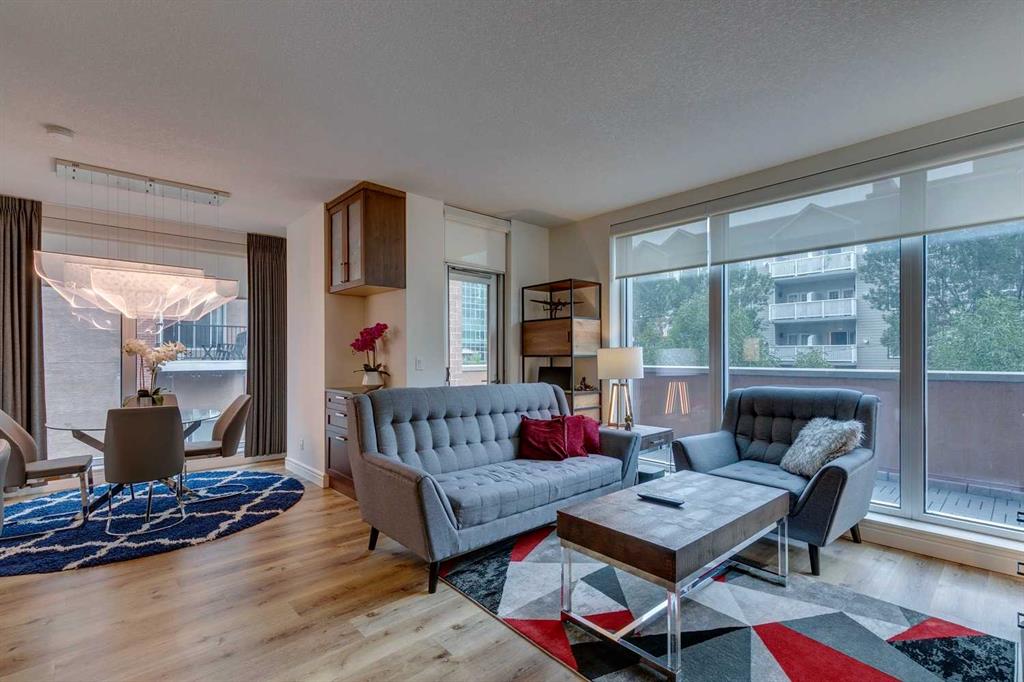 Welcome to the Bristol floorplan in The Montana, Calgary\'s premier luxury condominium. This remarkable 2-bedroom, 2-bathroom corner suite boasts 968 SF of upgraded living space. Floor-to-ceiling windows provide magnificent views of the downtown skyline, Recent updates include new luxury vinyl plank flooring, under-cabinet lighting, granite countertops, updated stainless steel appliances and modern light fixtures, The master suite showcases a 4-piece ensuite bathroom and custom built-in closet organizers. Large 2nd bedroom with an adjacent 3 piece bath. The full length balcony, equipped with a gas line for a BBQ or patio heater, extends your living space, central A/C, triple-paned windows ensure year-round comfort and tranquility. Titled underground parking stall and in-suite laundry complete the unit. Residents enjoy premium amenities, including a 24/7 fitness facility (currently undergoing renovations), secure bike storage, a business boardroom, 20 stall visitor parking, three high-speed elevators and full-time concierge provides a 5-star hotel-inspired living experience. Perfectly situated adjacent to Mount Royal Village Mall and just steps from the vibrant shops, cafés, grocery stores, restaurants, and the nightlife of 17th Avenue. Quick possession available. Click on the 3D virtual tour
