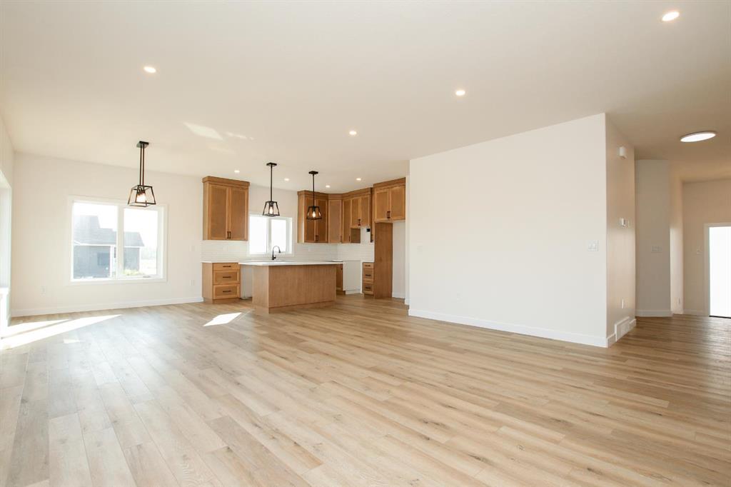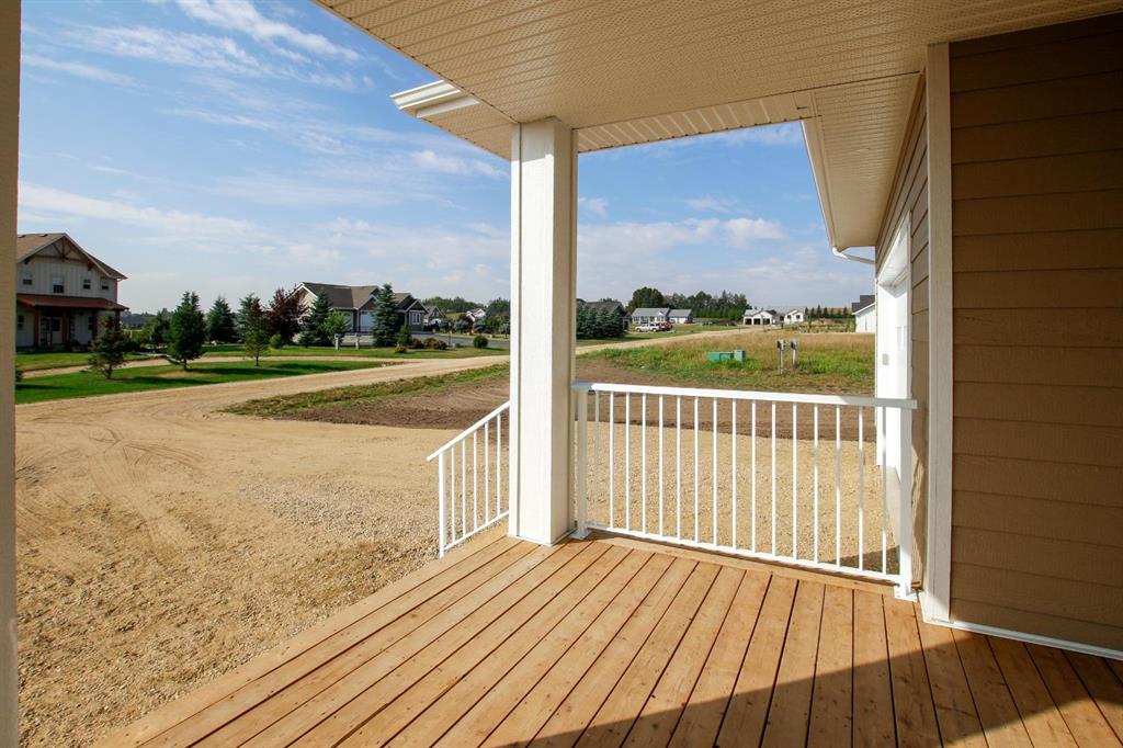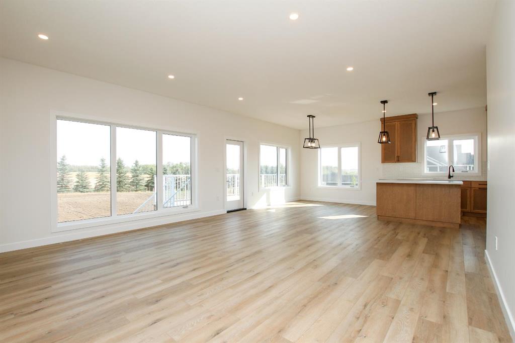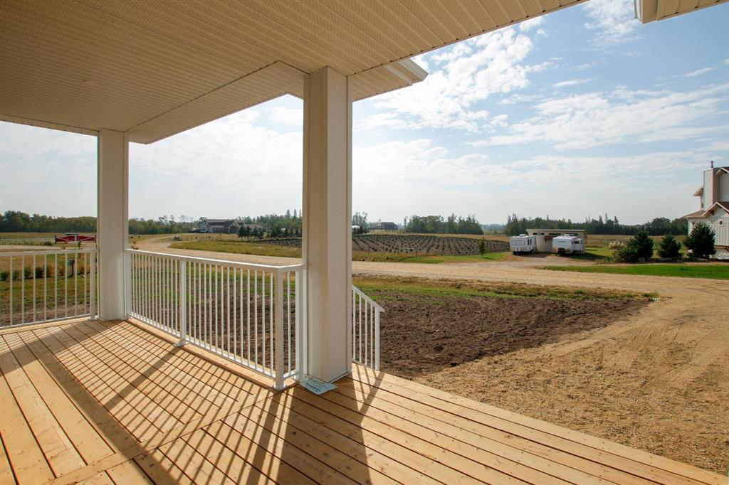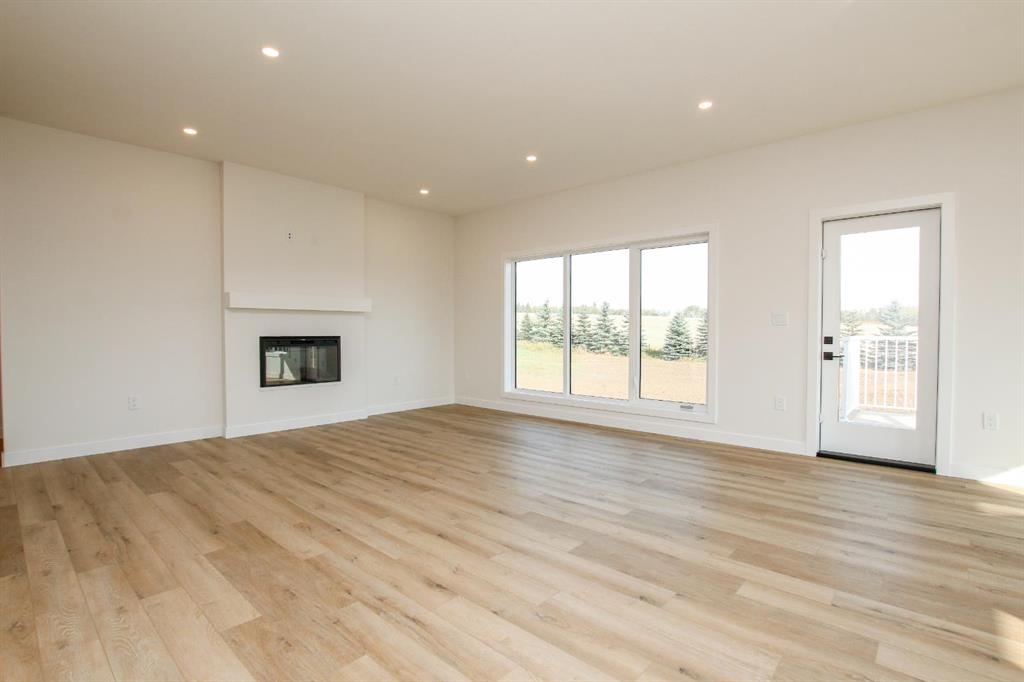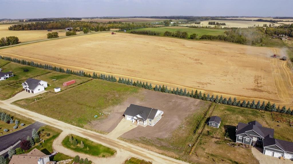 BRAND NEW BUNGALOW LOADED WITH UPGRADES THROUGHOUT ~ LOCATED ON 1 ACRE IN COUNTRY RIDGE ESTATES ~ IMMEDIATE POSSESSION AND MOVE IN READY ~ Durable composite siding, and a covered front veranda spanning over 22\' wide create eye catching curb appeal, and welcome you to this brand new home ~ The welcoming foyer has high ceilings, vinyl plank flooring and convenient access to the attached garage ~ The open concept main floor layout is complemented by high ceilings, durable, stylish vinyl plank flooring, and an abundance of large windows that fill the space with natural light ~ The living room is centred by a cozy fireplace with a mantle and wiring for your TV ~ The kitchen is beautifully finished with custom built, warm stained cabinets, full tile backsplash, tons of quartz counter space including an island with an eating bar, undermount sink with a window above, and a wall pantry ~ Easily host large gatherings in the dining room that\'s filled with natural light from the large windows with country views ~ A garden door leads to a 13\' x 12\' deck with aluminum railings, that overlooks the backyard and has more great country views ~ More large windows in the king size primary bedroom that features a spacious walk in closet with built in organizers, and 5 piece ensuite offering dual sinks, a 6\' soaker tub, and walk in shower ~ 2 additional bedrooms are both a generous size with ample closet space and large windows ~ 4 piece bathroom has an extra deep soaker tub with a tile surround ~ Centrally located main floor laundry hook ups, with additional hookups in the basement ~ The basement has large above grade windows, roughed in underfloor heat, a framed bathroom with plumbing roughed in, framed laundry room, utility room, and plenty of space for a large family room plus additional bedrooms ~ 26\' L x 24\' W double attached garage is insulated, finished with painted drywall, has over 12\' ceilings, floor drain and a man door to the side/backyard ~ Located on 1 acre of land with plenty of space and backing on to a row of mature trees, a walking trail and farm land ~ School bus stop just steps from the front door ~ Ideally situated just minutes west of Ponoka with quick access to Highway QEII ~ This property offers the peace of country living without sacrificing in town convenience ~ Immediate possession and move in ready!!