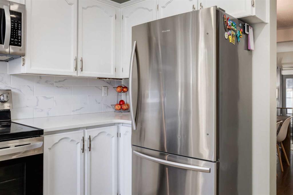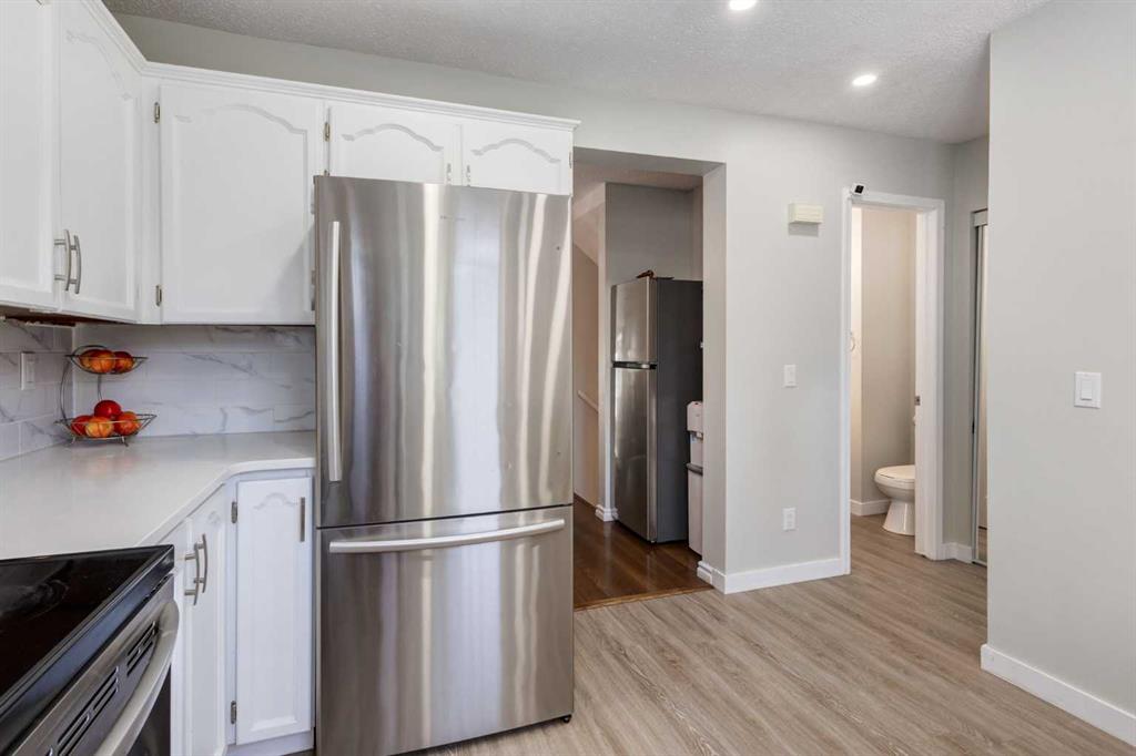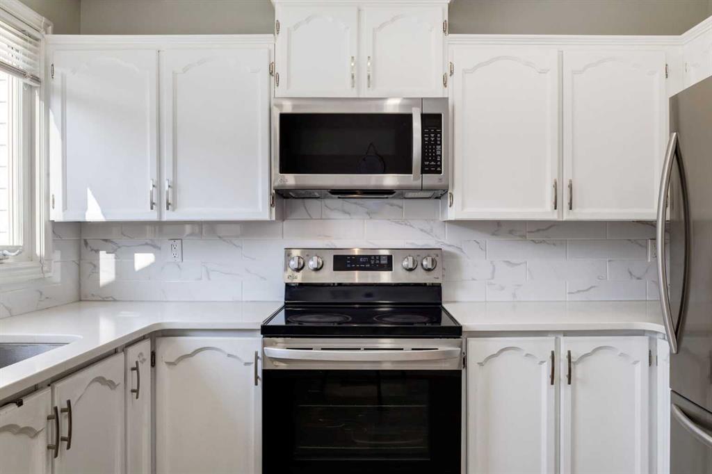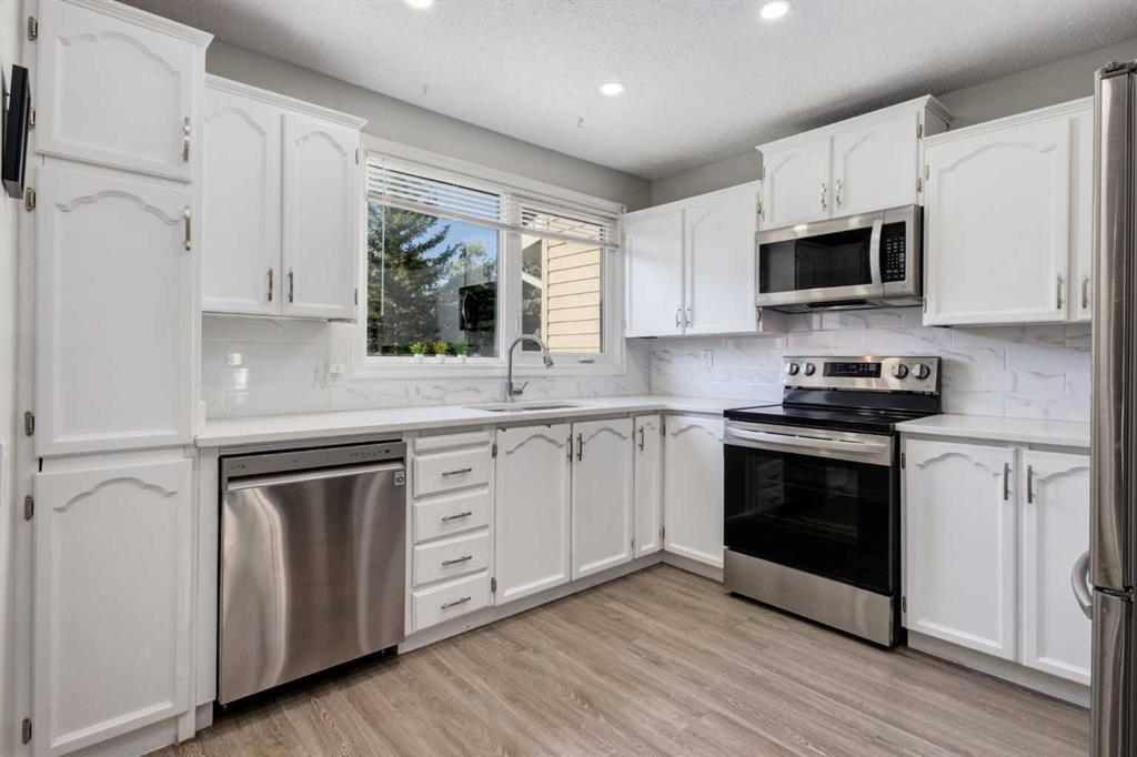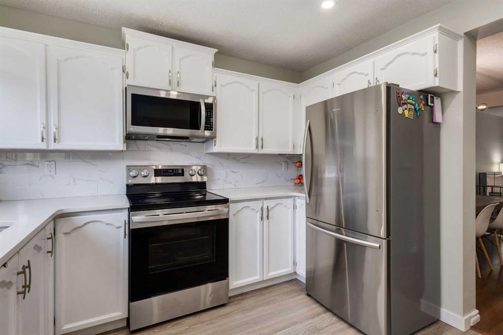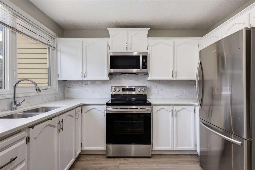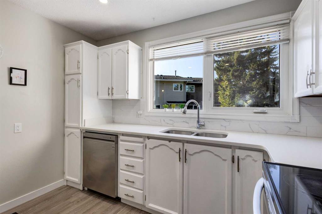 Welcome to Canyon Meadows! This well-maintained 3-bedroom townhouse offers over 1,460 sq. ft. of comfortable living space in a well-managed complex with low condo fees. Perfectly located near schools, playgrounds, public transit, and just minutes from Fish Creek Park and Babbling Brook Park, this home combines convenience with a great community feel. Step inside through a newer front door to a spacious kitchen featuring quartz countertops, an undermount sink, tile backsplash, SS appliances, luxury vinyl plank flooring, and plenty of cabinet space. The adjoining dining room provides ample space for family meals, while the large living room and garden doors opens to a private backyard—ideal for relaxing or entertaining. A conveniently located powder room completes the main floor.