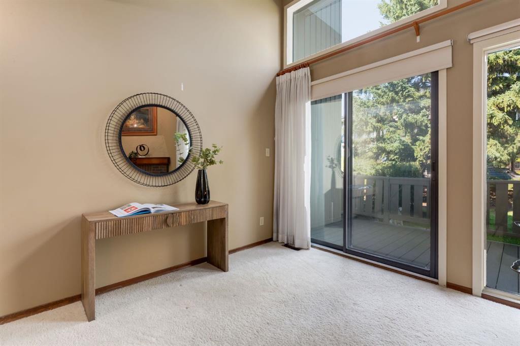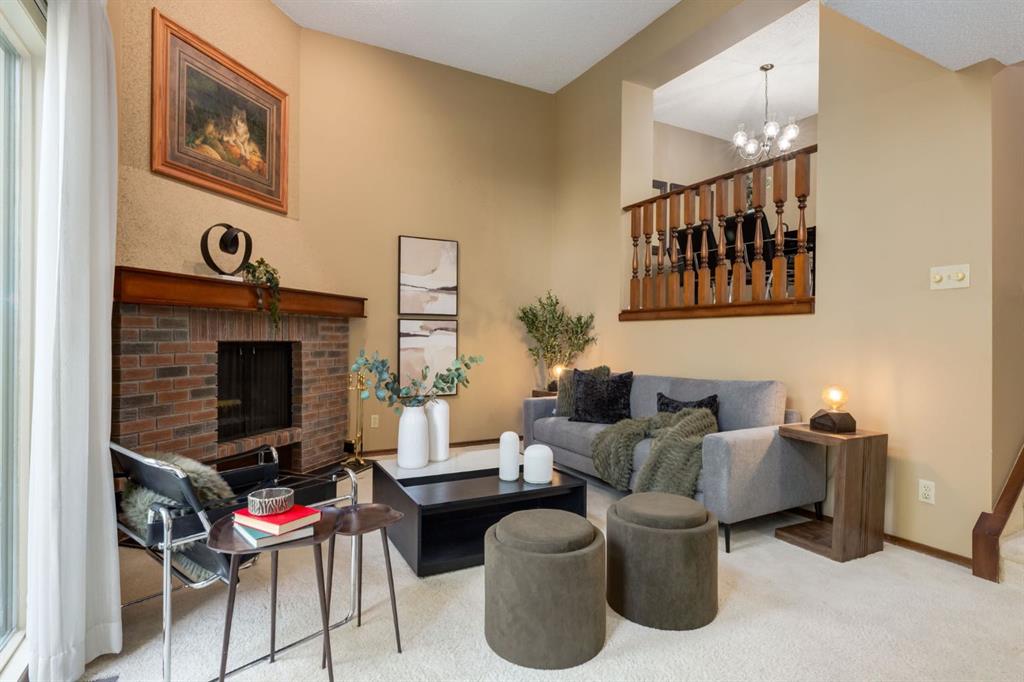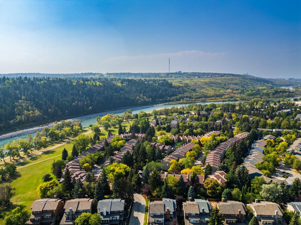 On a picturesque, tree lined street in the quiet riverfront community of Point Mckay lies this coveted 3-bedroom, 2.5 bathroom, pristinely maintained townhome along the Bow River Pathway System which stretches for miles and offers endless adventures. This pristinely maintained home is a rare offering which has only ever had two owners and was last sold in 1990. With 3 bedrooms, 2.5 bathrooms, and over 1,650 square feet of living space, this home offers exceptional value for the community. You’re welcomed through the front door by a spacious foyer with easy access to the garage. Cozy up in your beautiful living room next to your wood burning fireplace with a timeless brick surround, gas starter, and mantle under sky high cathedral ceilings surrounded by large, private windows with views of greenery. The living room’s sliding glass doors spill out onto the spacious deck which overlooks a green space full of beautiful mature spruce trees which never lose their leaves, offering you year-round beauty and privacy. Up the stairs is the sizeable kitchen including solid wood cabinetry, newer appliances, tons of storage, and large windows offering beautiful natural light to the sunny space. Adjacent to the kitchen is a spacious dining room, perfect for hosting guests and enjoying family gatherings. This level also boasts a half bathroom and a functional laundry room with storage. The upper level showcases three spacious bedrooms and two full bathrooms including your large primary bedroom with your private 4-piece ensuite bathroom. The lower level of the home enjoys ample storage, a utility room with laundry hookups (if downstairs laundry is preferred), and a bonus room which is currently being used as an office but could also be used as a gym/flex space. This quiet dead end street boasts only local traffic and is surrounded by walking paths leading to scenic and peaceful green spaces along the river. With excellent proximity to downtown, the Foothills and Children’s Hospitals, the University of Calgary, and SAIT, this is an incredible home to live and invest your hard-earned savings. Step outside to enjoy nature, the Bow River, prime access to river pathways, and enjoy all the amenities Edworthy Park. This perfect location provides an easy commute downtown along the Bow River, instant access for a walk and run along the pathways, and excellent walkability to boutique cafes, shops, restaurants, and amenities.