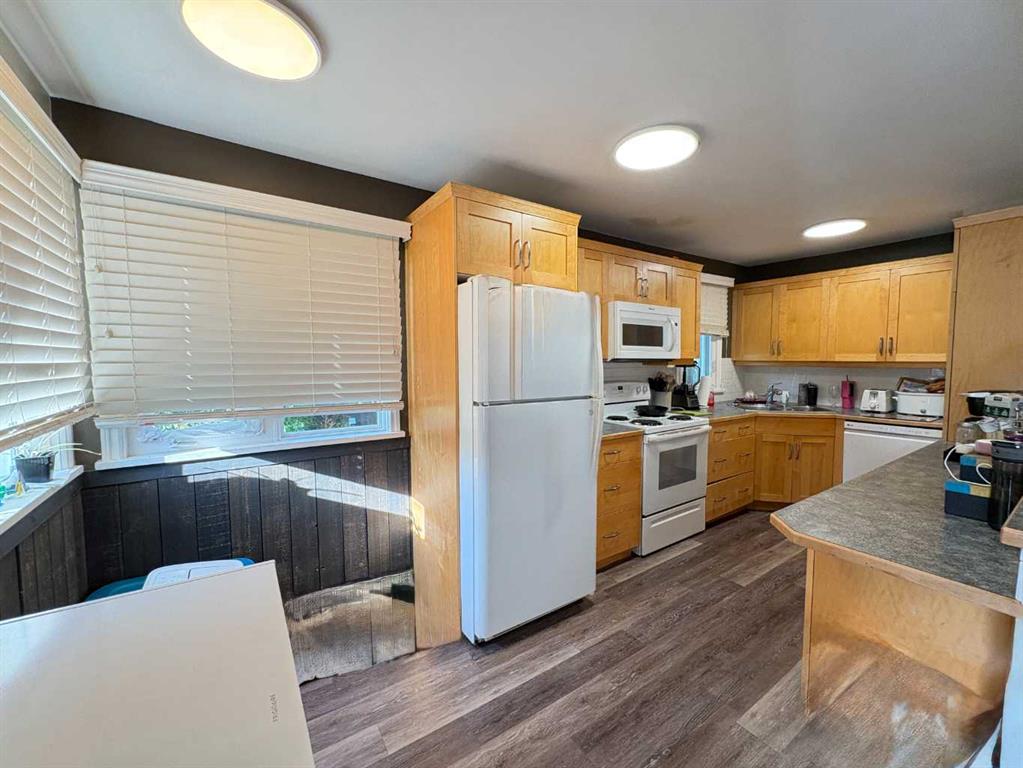 CUTE AS A BUTTON and Located in the much desired area of WASKASOO! All the expensive renovations have been done: Kitchen (2002), roof (2006), siding, windows, exterior doors, rear addition, Electrical panel, etc. The main floor features updated kitchen with breakfast nook and sit-up peninsula creating a super functional space with tons of countertop and storage. This area opens up into a perfectly sized living room and formal dining area. The main level also holds a master bedroom, main floor laundry and 4 piece bath as well as a large rear entrance and cute front entrance space, so there is lots of room for the shoes! Upstairs you will find two good sized bedrooms, perfect for the home office, the kids or a wonderful craft space. The basement is fully developed with a large family room, and a bedroom with an attached half bath - an ideal space for teenagers or guests. Outside you can enjoy the HUGE backyard with oversized single garage - a great space for your projects or parking out of the weather. Located within a two block radius from THE RED DEER RIVER, PARKS, TRAILS, two elementary and two high SCHOOLS. Walking distance to DOWNTOWN and SHOPPING, this area is highly sought after due to its location, maturity, and Super-sized Lots!! Great for a first time homebuyer, someone seeking simple main floor living or the savvy investor.